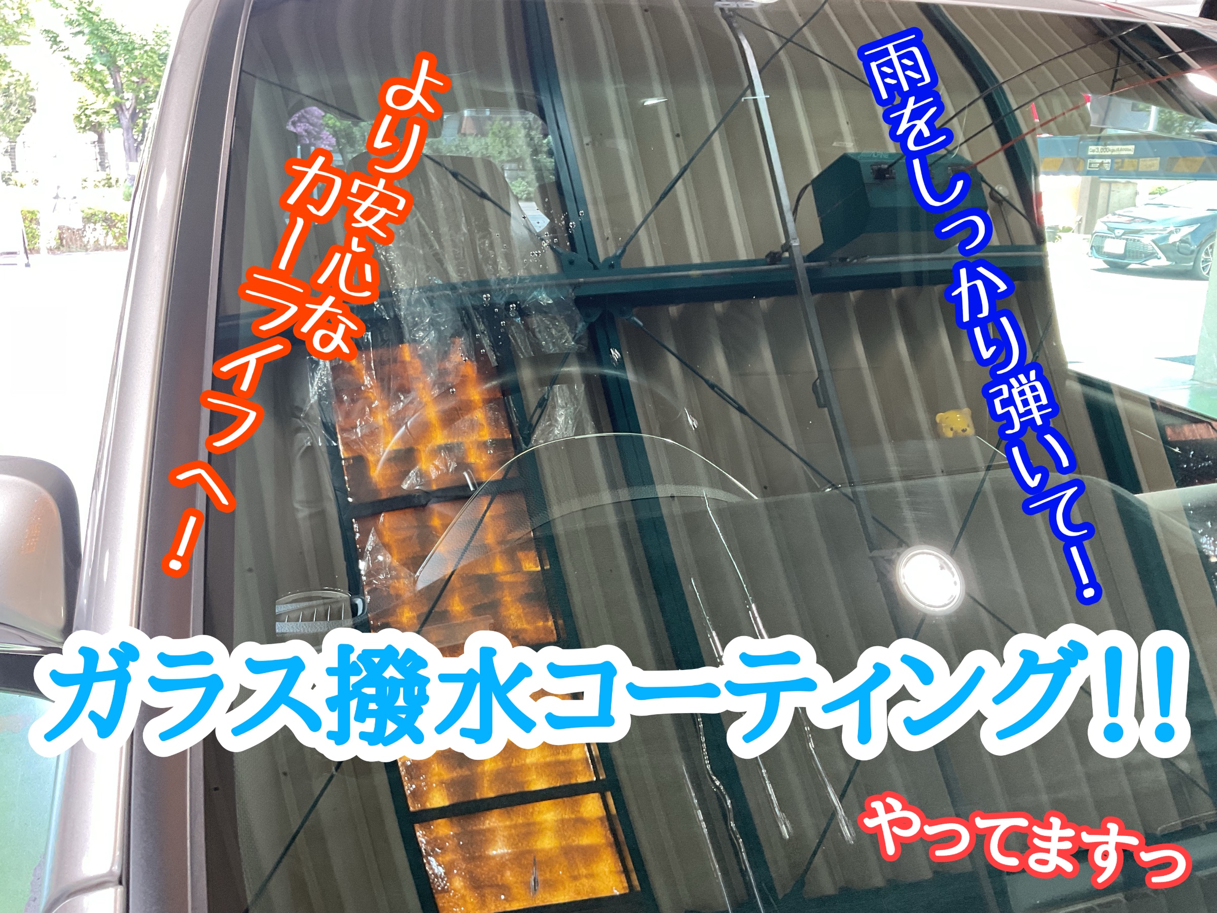 【ガラス撥水コーティング】急な雨、安全に運転いただくために…