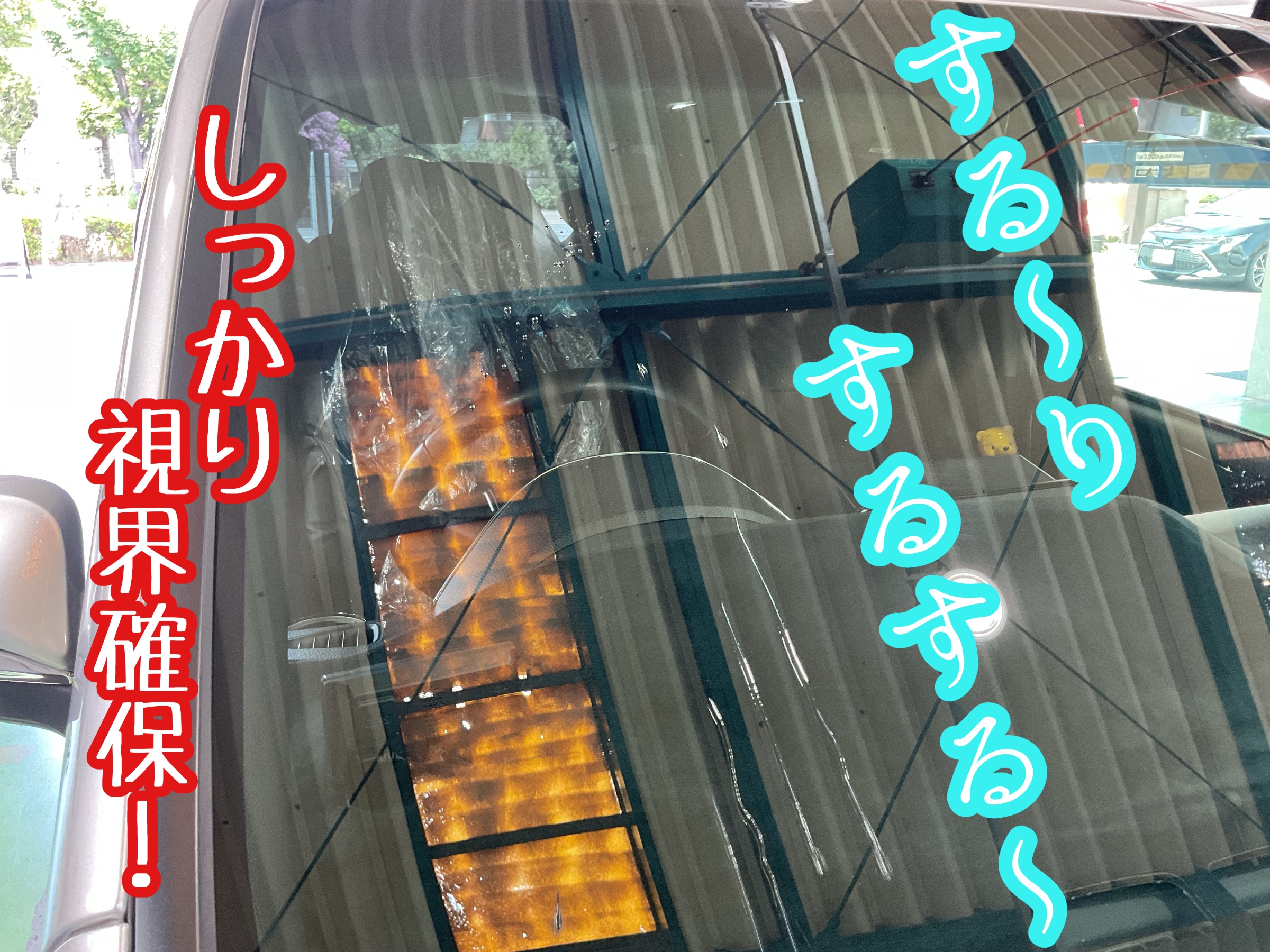 ベタァッとひっつく状態だと、いくらワイパーを動かしても視界が悪いまま…