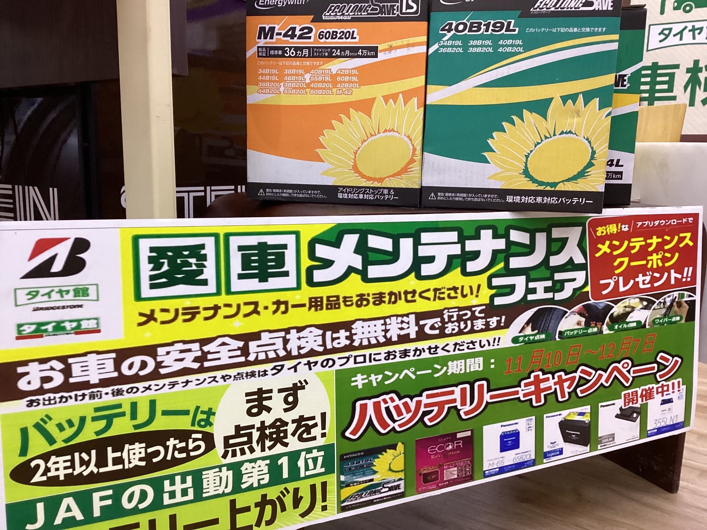 期間中バッテリーがお求めやすく!点検は無料!是非お気軽にご利用を!