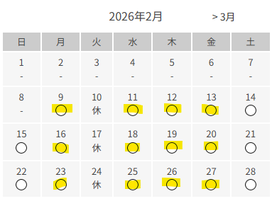 ※選択が出来ない時間はすでに予約が入っておりますので空いている時間で予約をお願い致します。