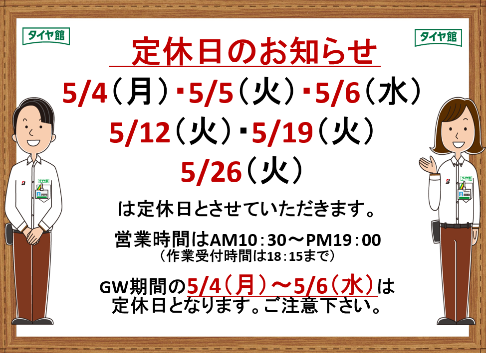 GW期間5/4(月)〜5/6(水)は店舗定休日となります。