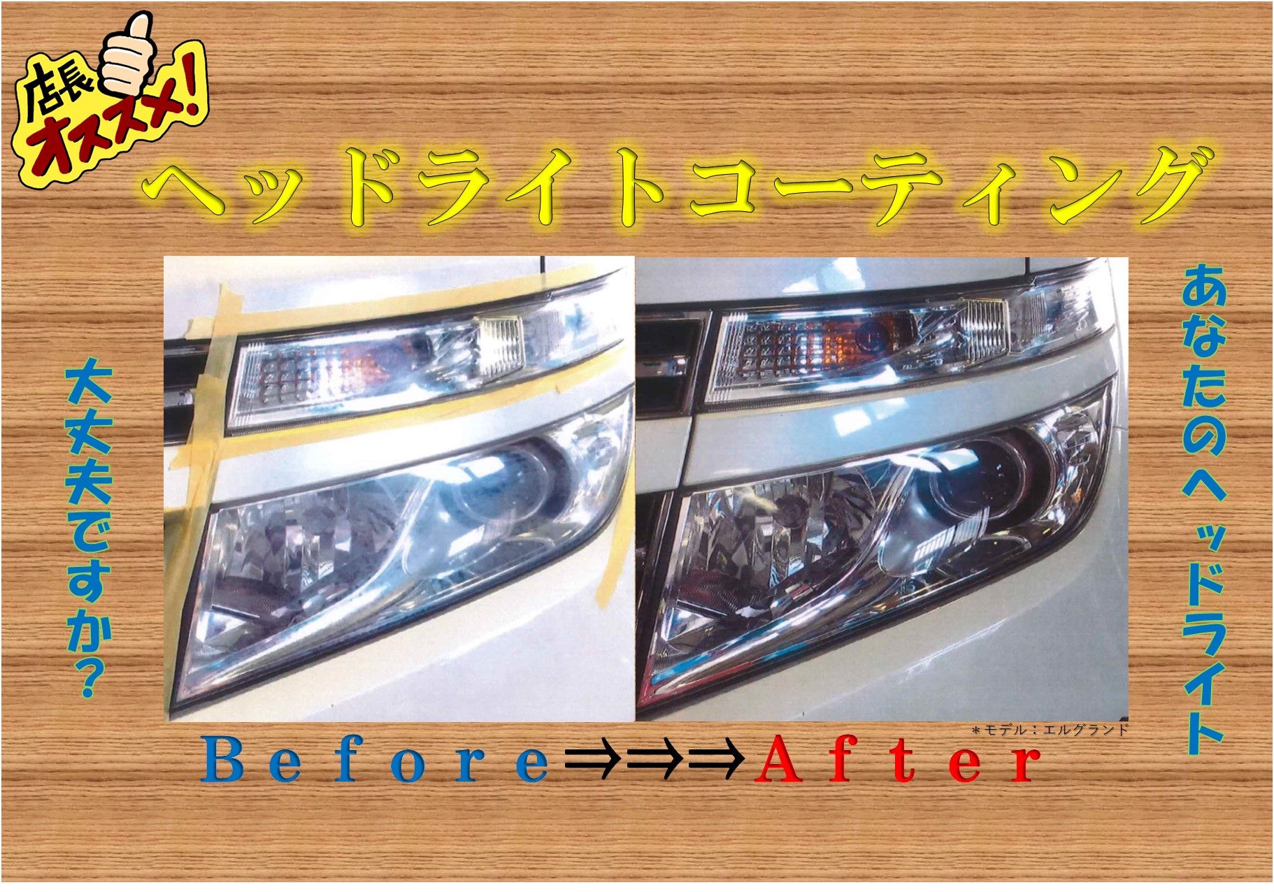 ヘッドライトコーティング ポスト 2019年11月28日 新入社員のスミダです! 9月からヘッドライトコーティングを導入して もう3ヵ月がたちました。 予想以上にお客様の反響がよく多数のお客様に実施しています! 僕たちの腕も上がってきていますので 安心して任せてください( *´艸`)) ヘッドライトがくすみきる前に気になったらお尋ねください! 中には取り切れない汚れもございますので詳しくはスタッフまで!(^^)! 担当:スミダ