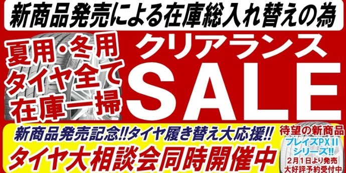 ★セールはじまります★ ポスト 2020年1月13日 いつもタイヤ館をご利用いただきありがとうございます! まもなくクリアランスセールが開催します!(^^)! 1/18からです!! 是非お楽しみに( *´艸`) カテゴリ:お知らせ
