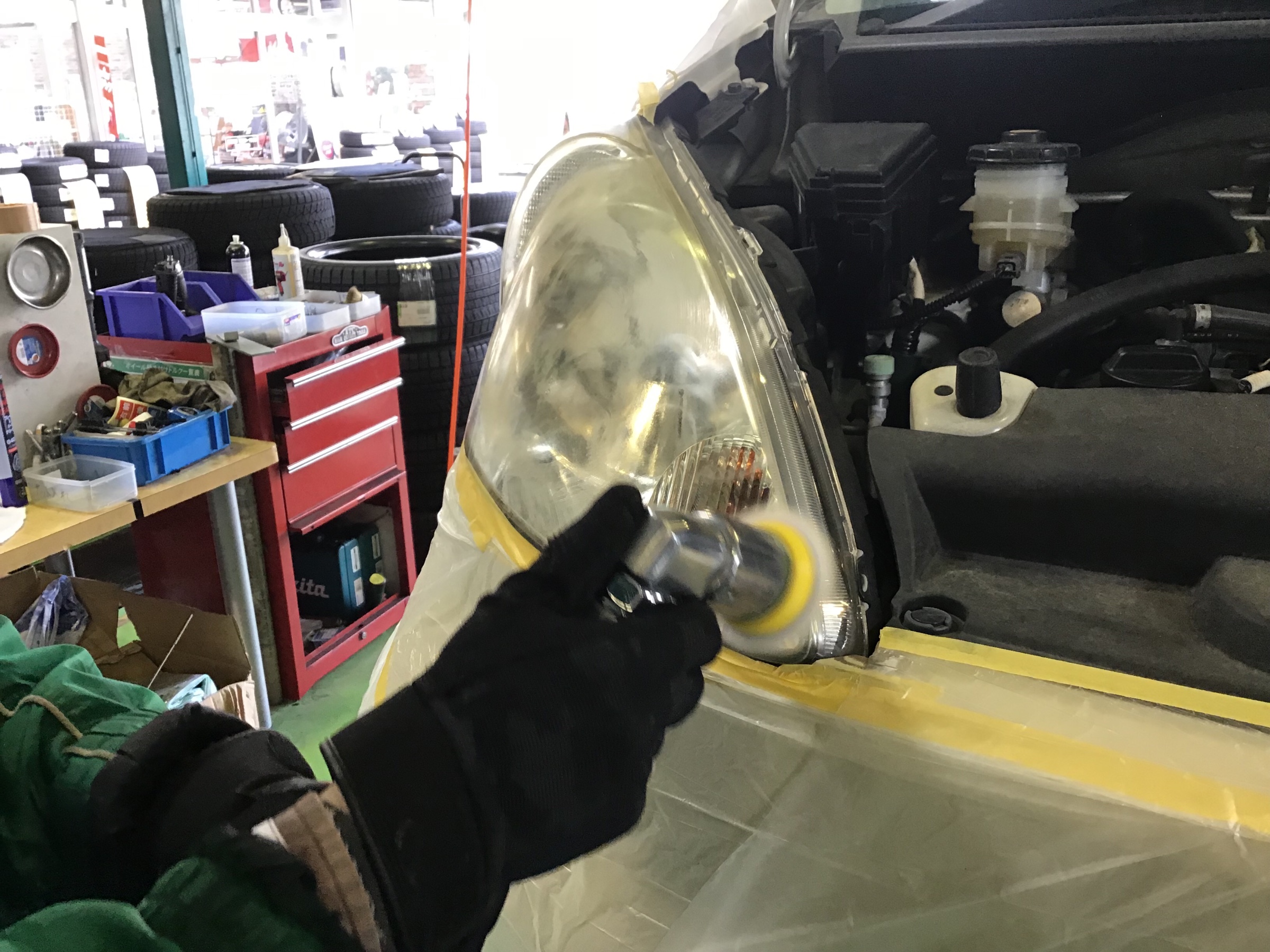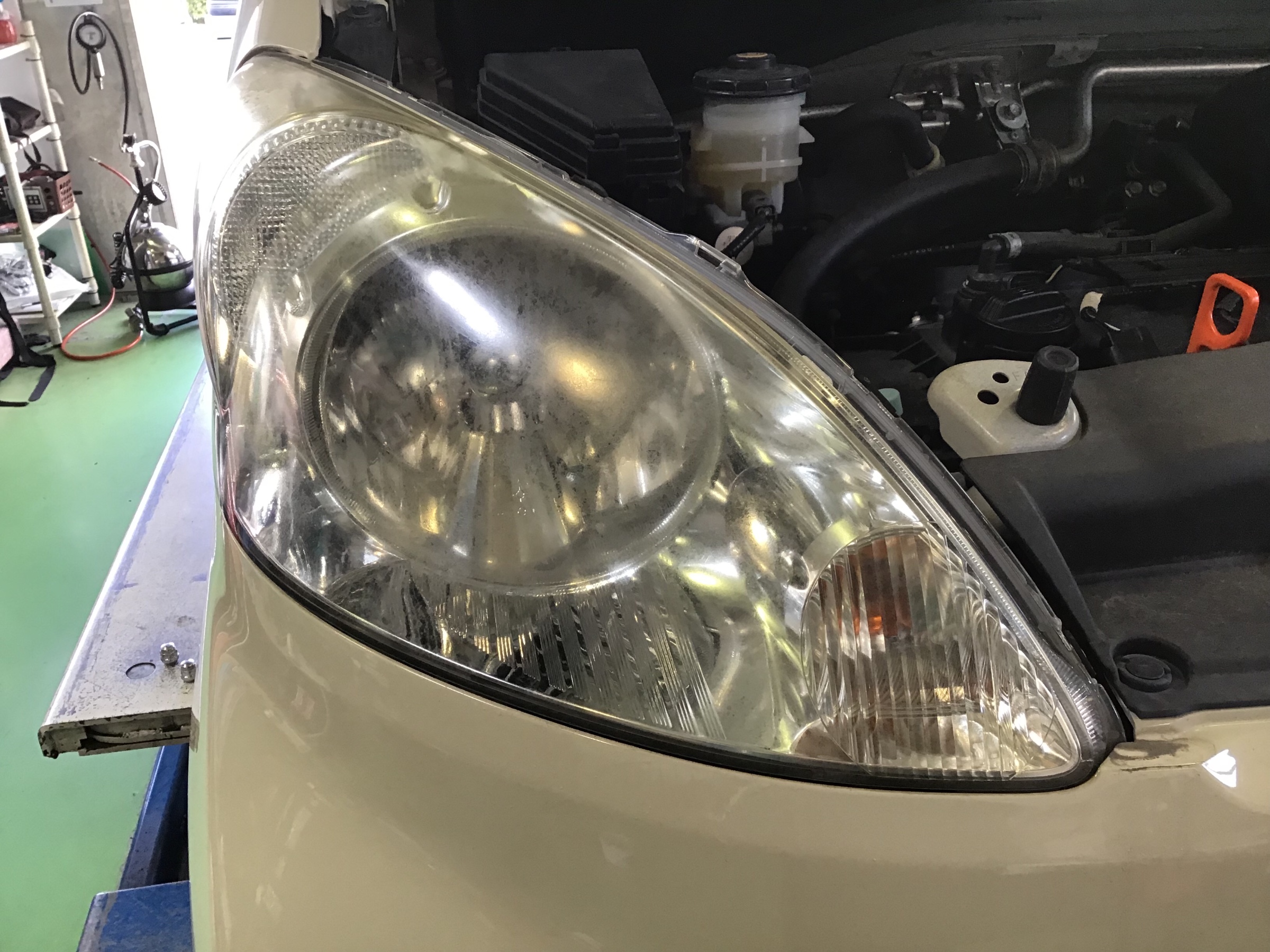 外からの日焼けで黄ばんだヘッドライトを