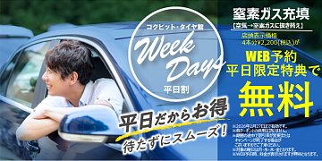 平日限定キャンペーン|窒素ガス充填無料【2/9~2/27】