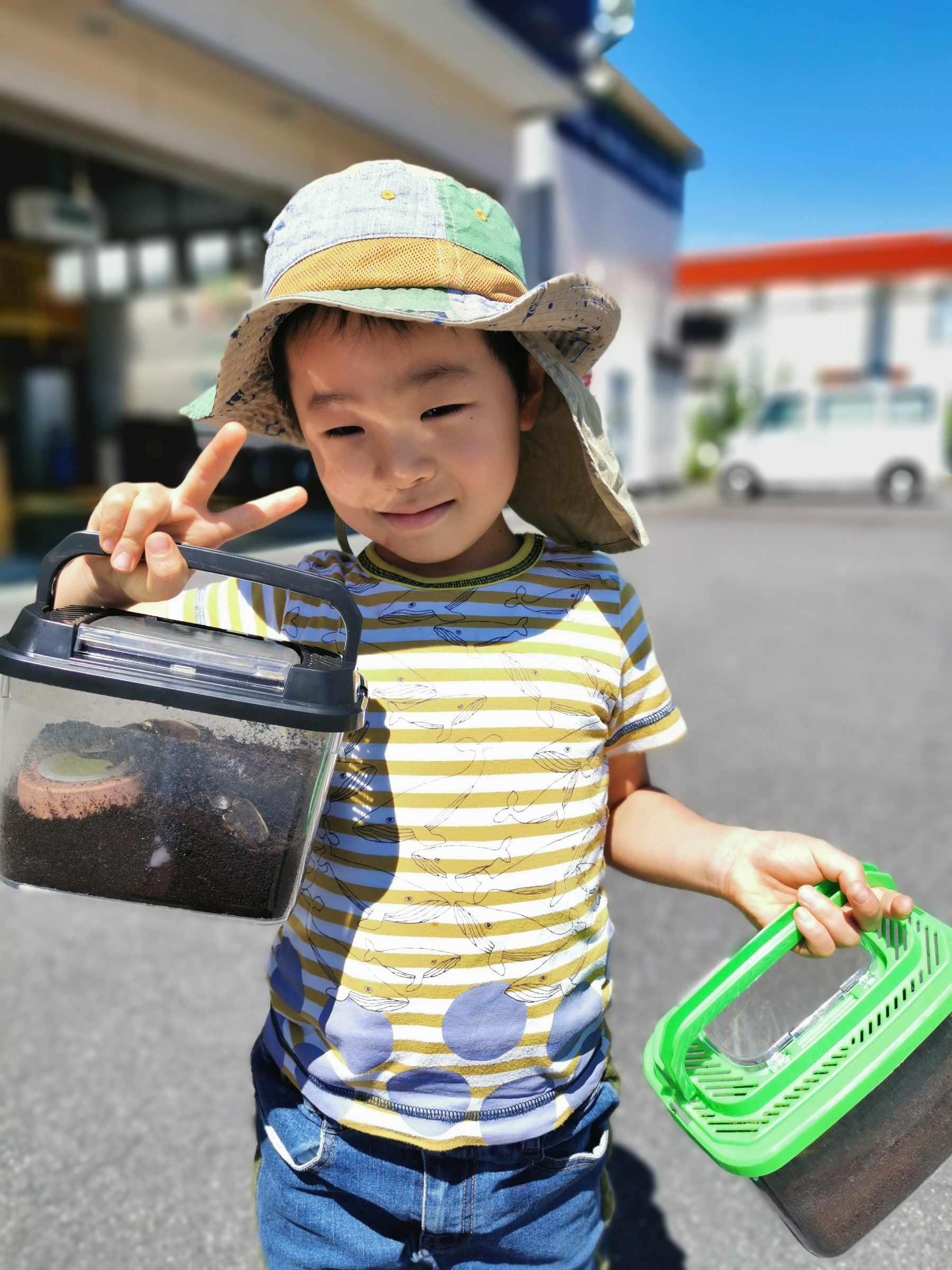 お父さんと虫採りに出かけたそうですが中々採取できなかった様です。偶然HPを見つけてご来店されました! クワガタとカブトムシをプレゼントさせて頂きました。大事に育ててください!