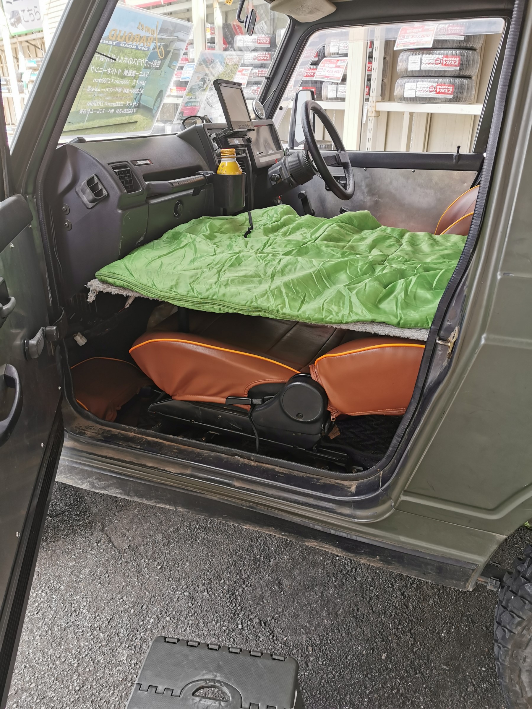 話がズレましたが現在展示中のキャンピング使用のジムニーですが室内を車中泊しようにして展示中です!