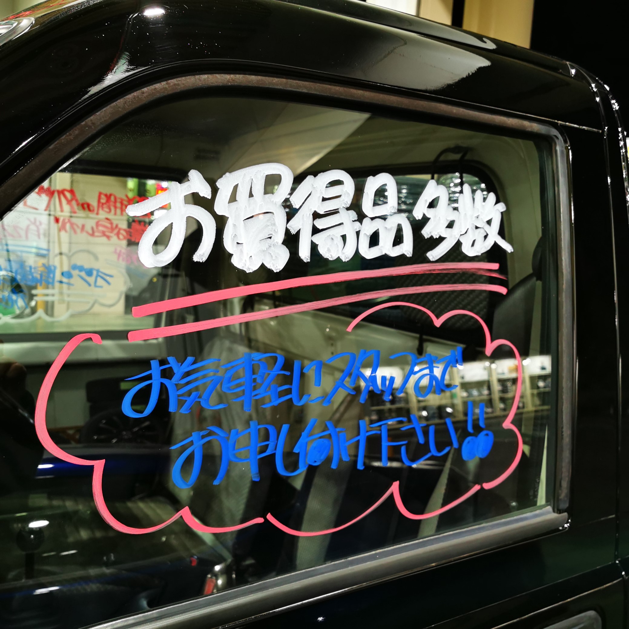 エリアマネージャーにお願いをして芸術的な落書きに仕上げて頂きました(笑)