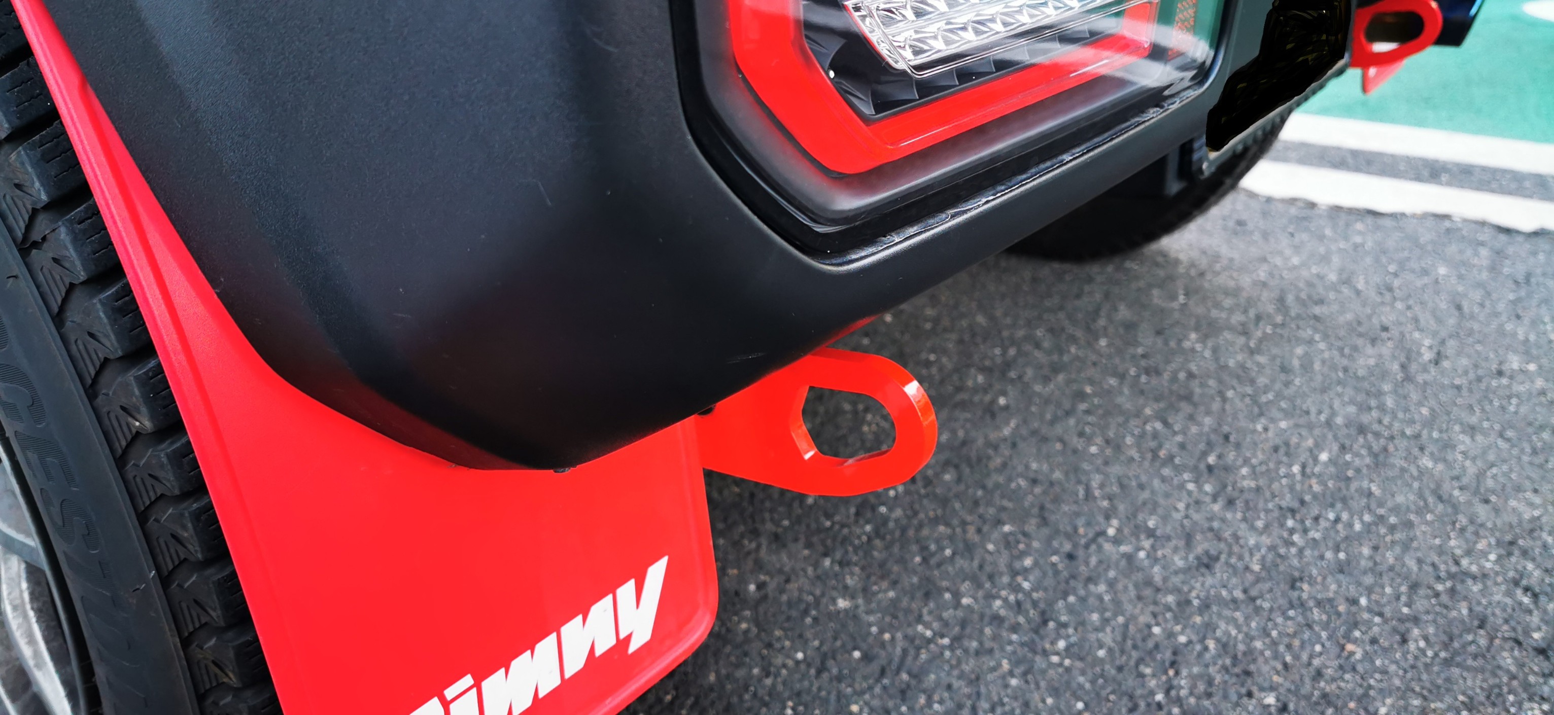 リアもアピオ牽引フックに交換です! 泥除けに合わせたレッドです!