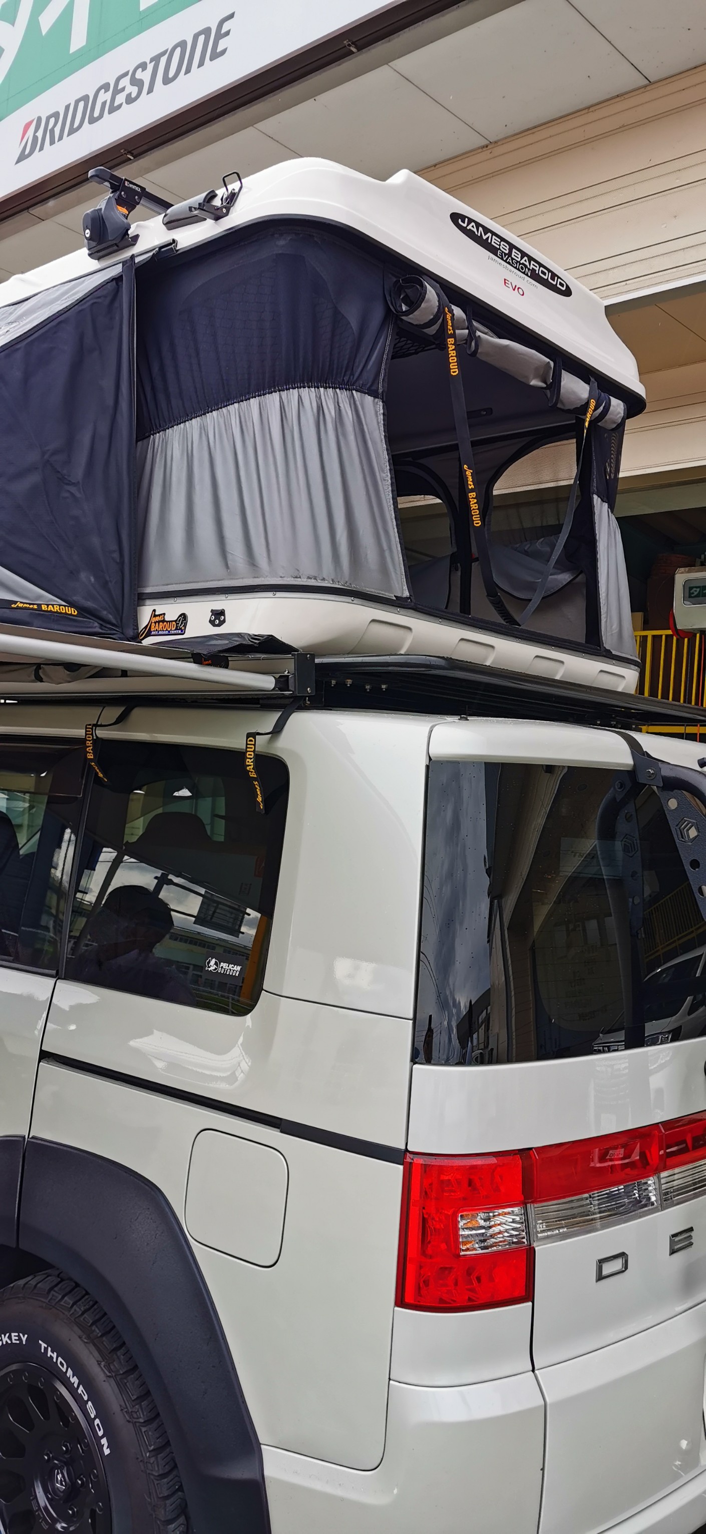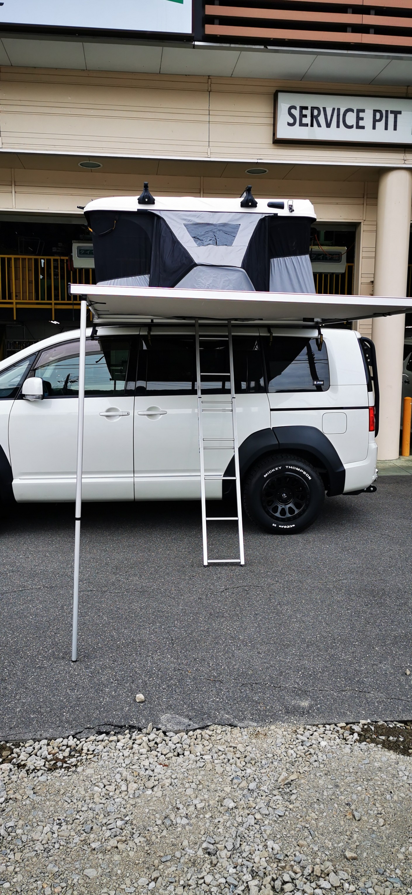 ルーフテント見参!!! サイドオーニングはトンネル式で雨でも濡れない!