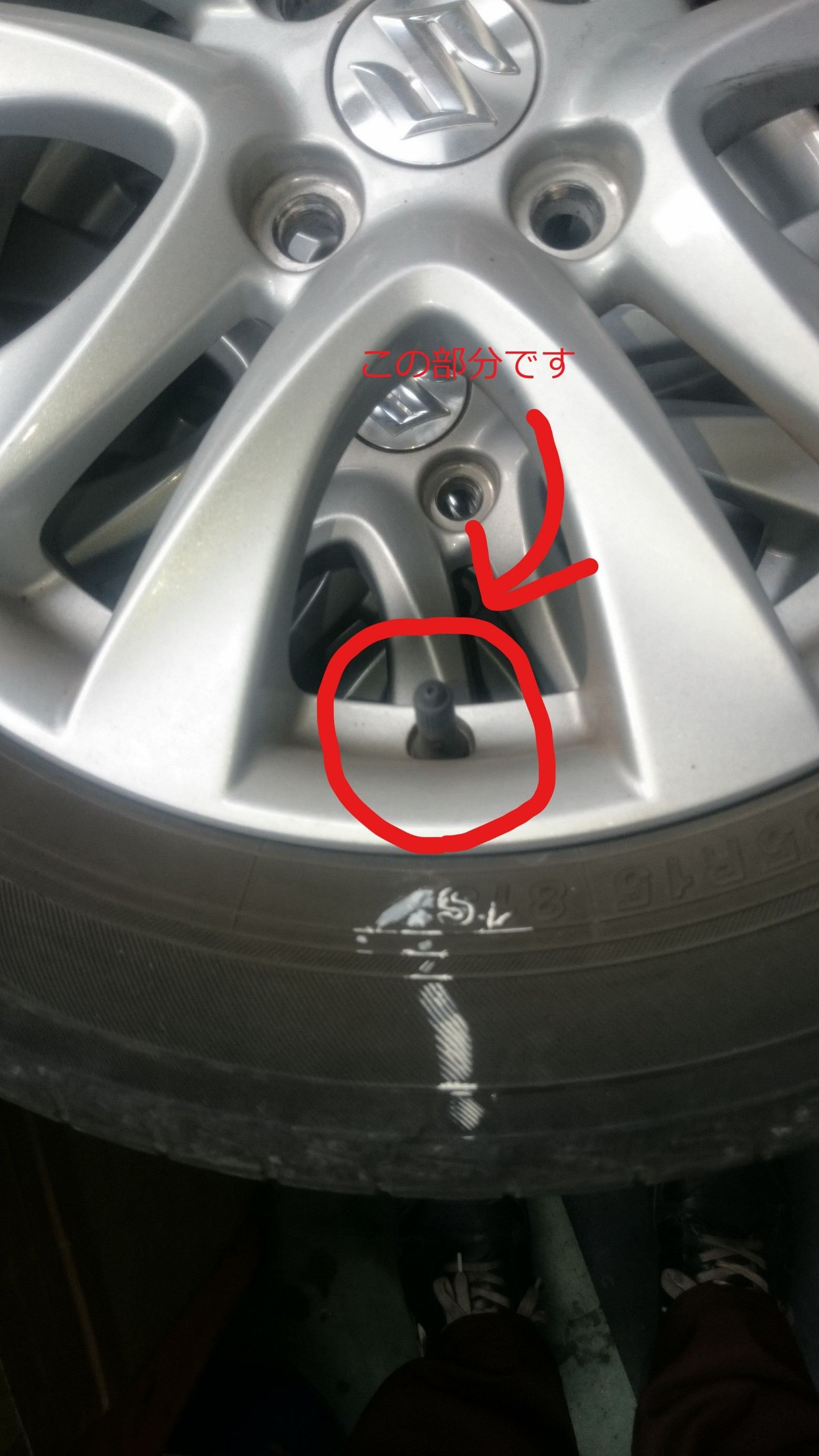 当店では必ずホイールに付いている空気の入り口、