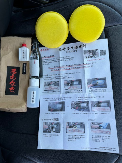 次に窓ガラス撥水剤ですが画像の通り施工に必要なものはセットになっております。
