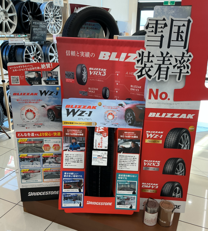 WZ-1ですが、ブリザックですので、氷上性能、雪上性能が断トツなのは当然として、乾いた舗装路面の乗り心地、静寂性等がかなり優れているようです。近年は雪の降る日が減っていますが、雪の上以外でも満足していただけるタイヤになっています!