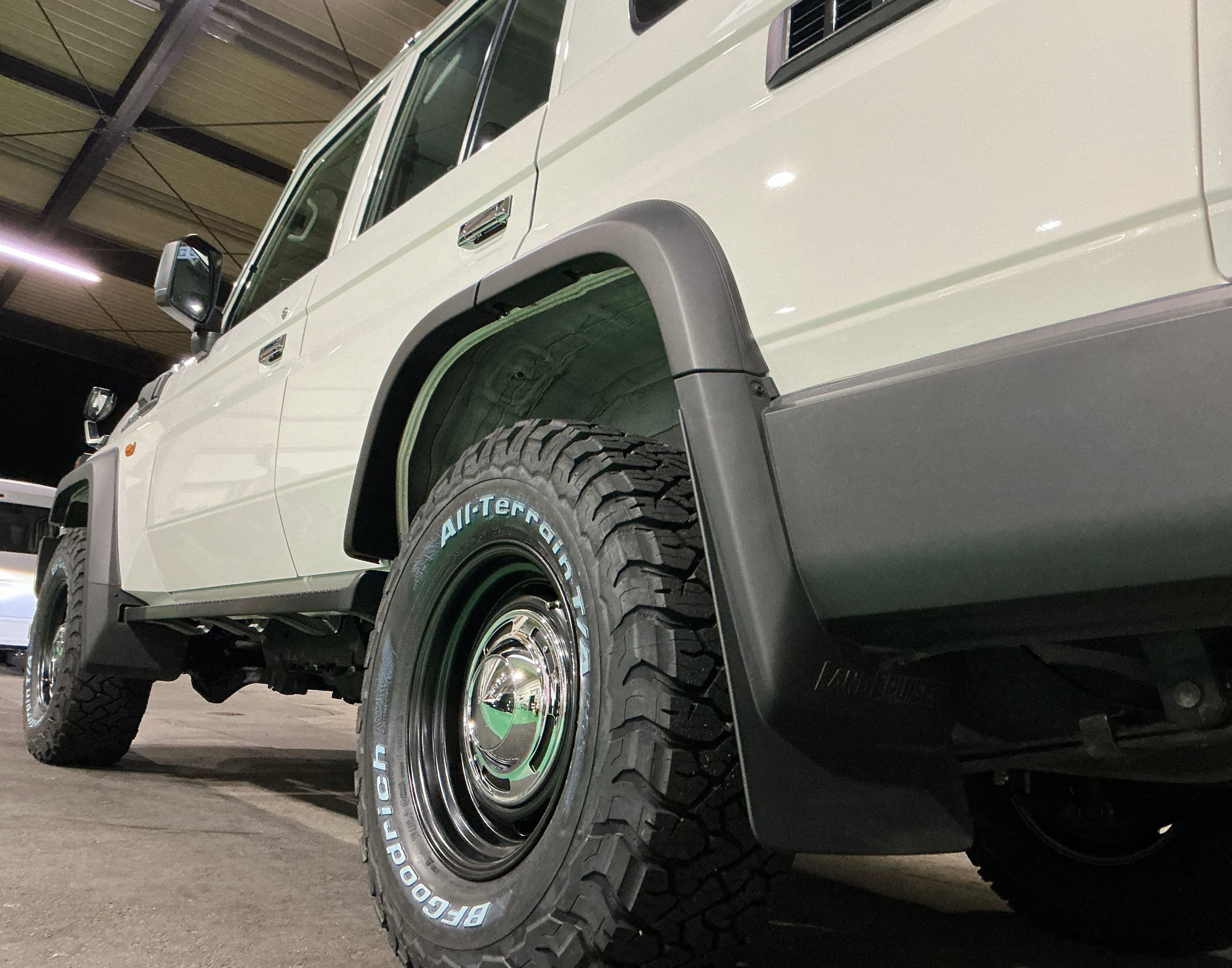 70ランクル X ディーン/クロスカントリー★ ポスト 2025年10月13日 大人気のトヨタ/ランドクルーザー70! ホイール交換いたしました☆ 早速ご覧ください! 交換前 交換後 めちゃくちゃカッコイイですね!! ランクル乗りの方!是非ご相談ください!