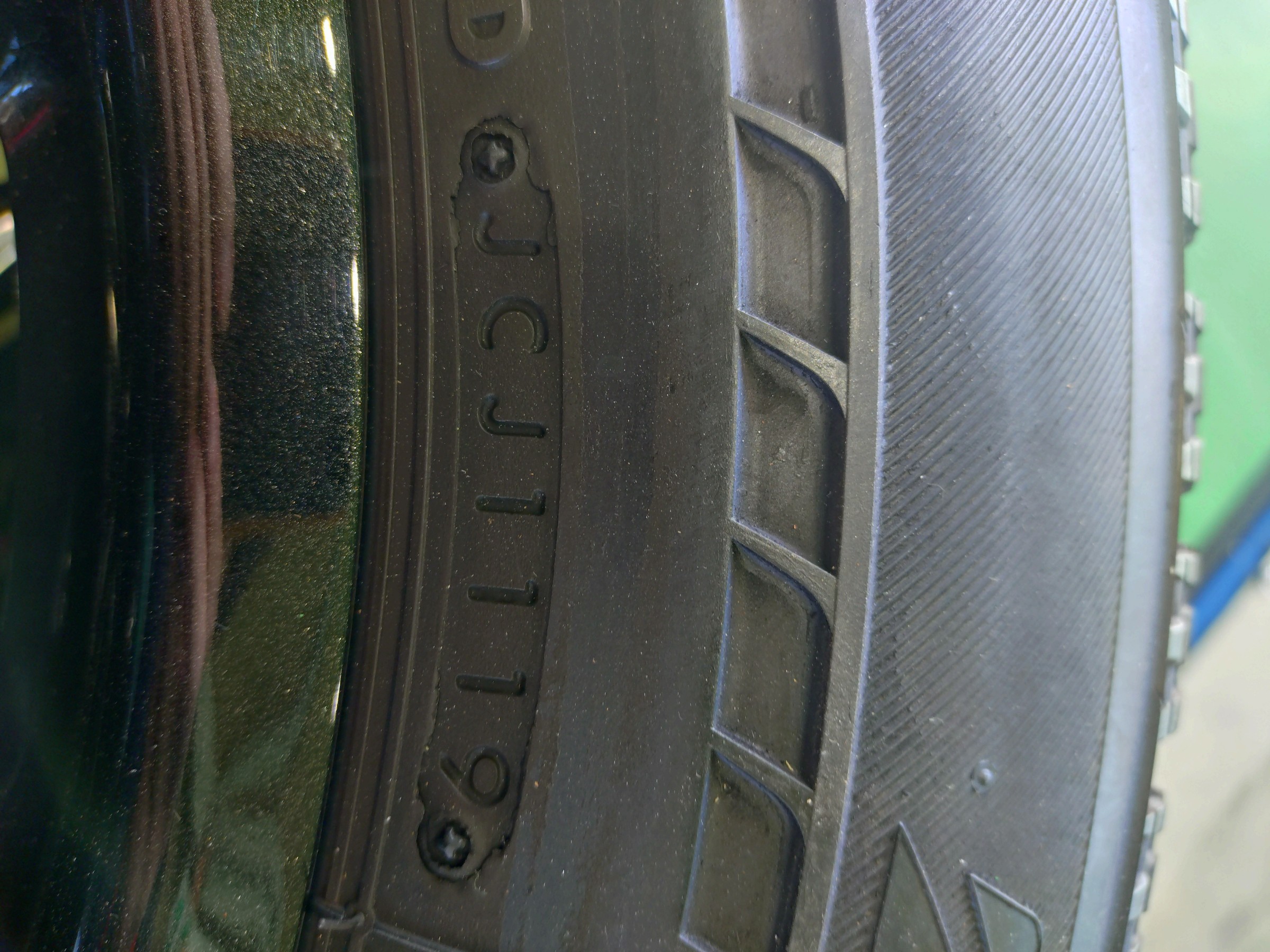 製造年です。タイヤの外側に打刻があり、一番画像の場合2019年製になります。一般的にスタッドレスタイヤの寿命は4年くらいといわれています。