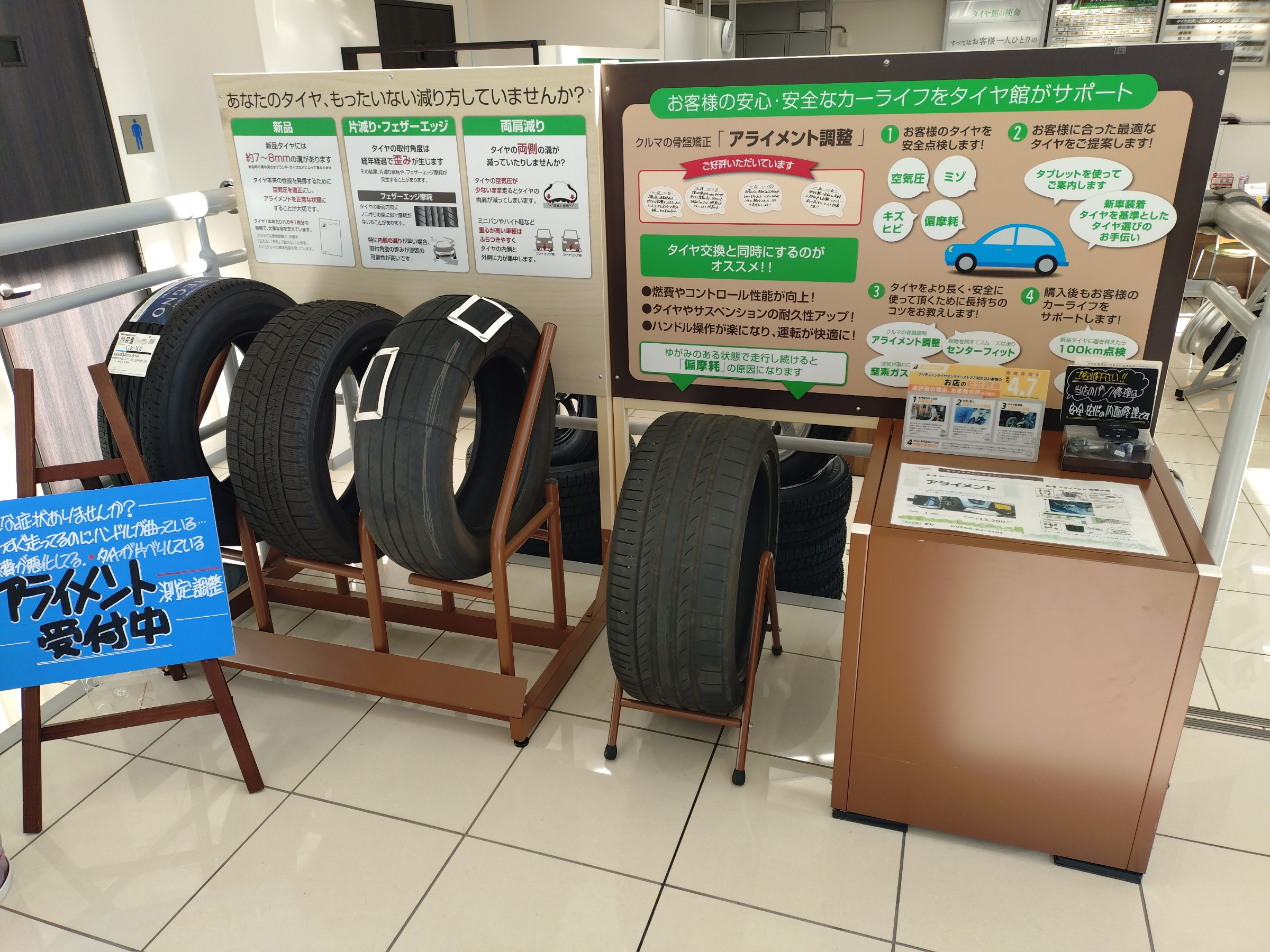 アライメントコーナーもわかりやすく移設しました!車のアライメント、意外と侮れませんよ?