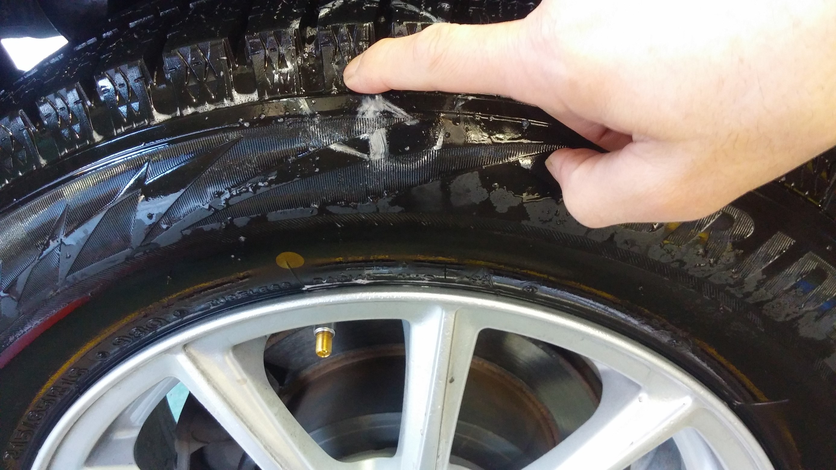 昨年新品でタイヤを買って頂いたお客様がパンクで来店・・・・
