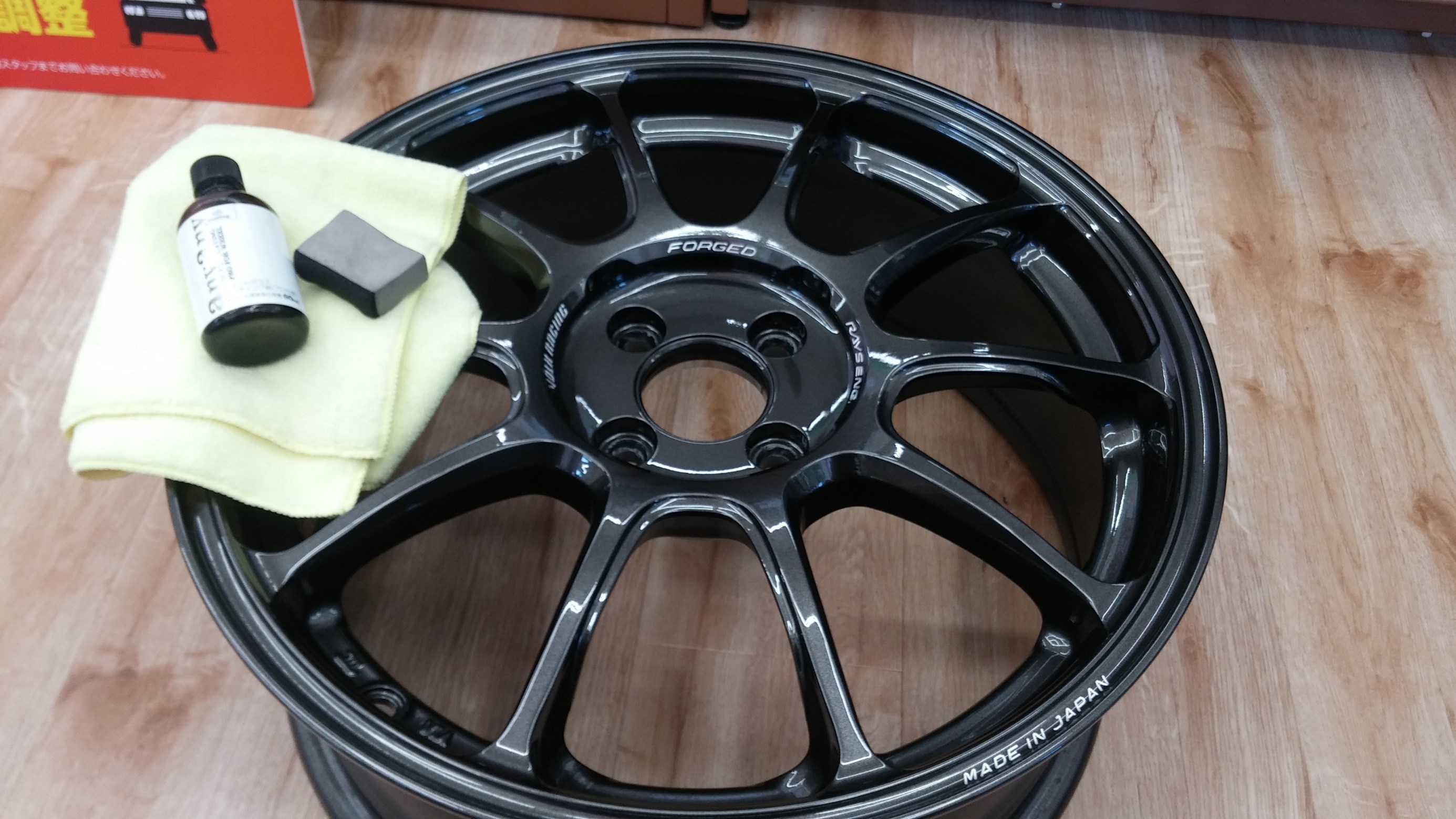 12月にお買上げ頂いたレイズ・ZE40をお預りしまして、ガラスコーティングを施工しております。