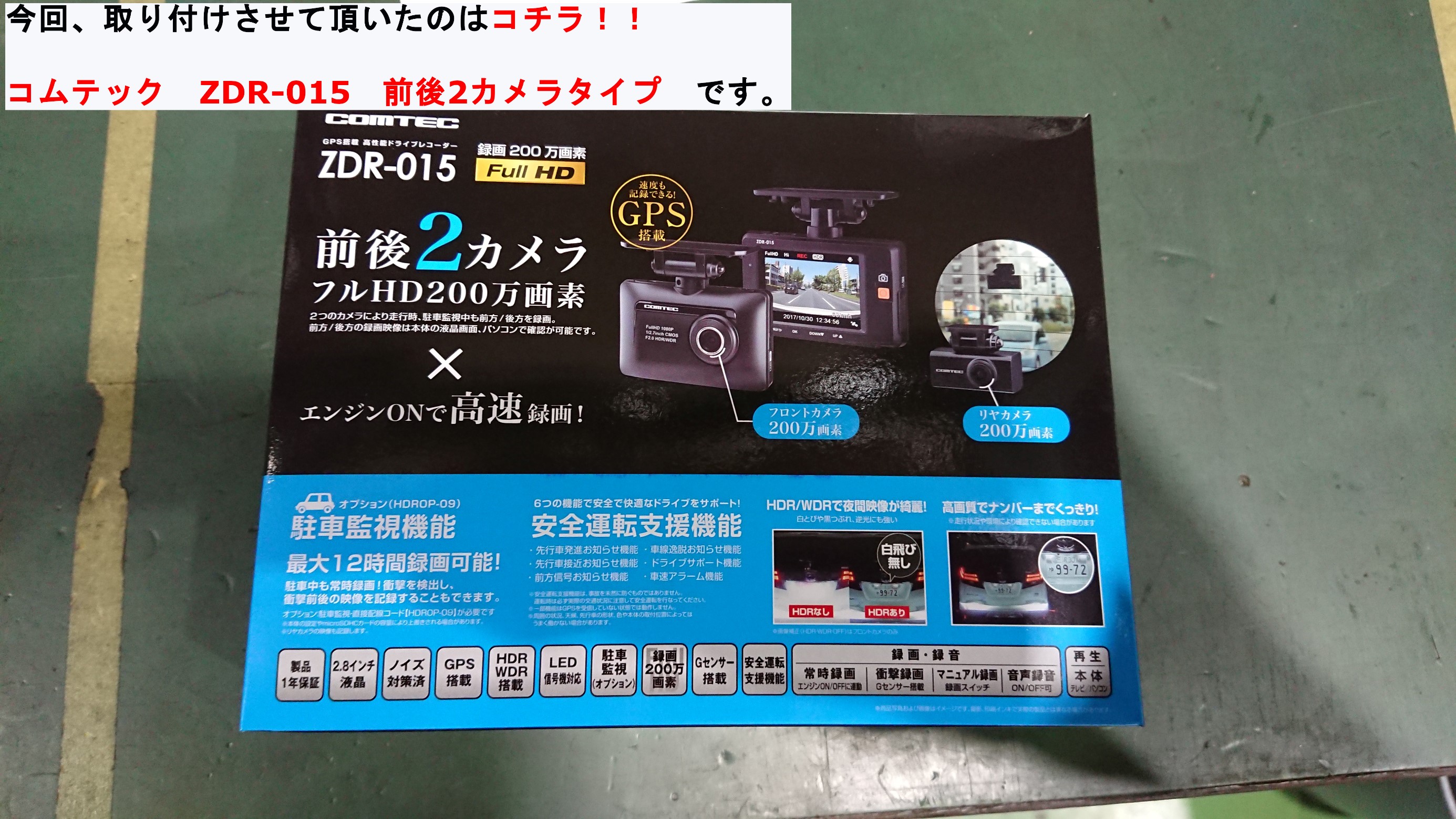 取り付けたのは「COMTEC コムテック ZDR-015」