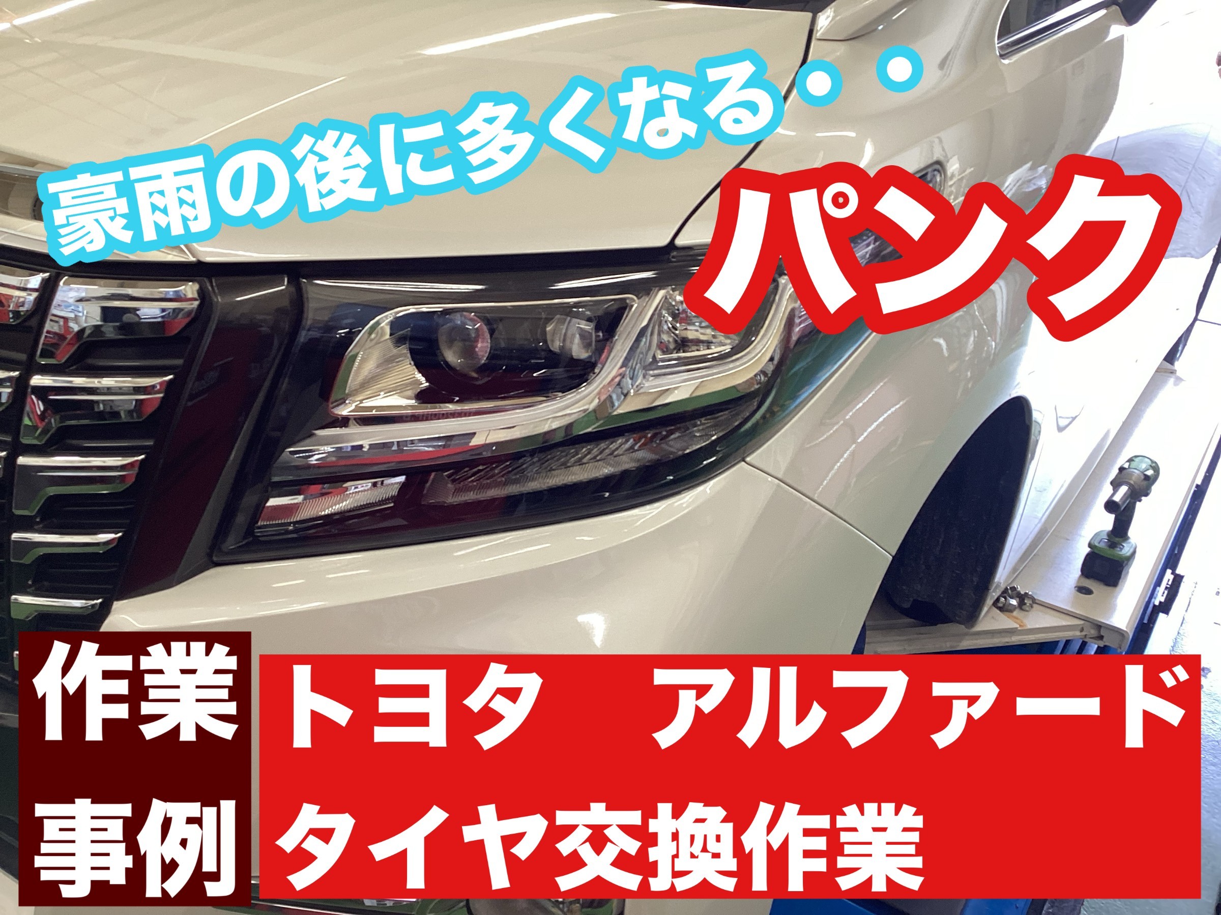 雨の日多くなる パンク トヨタ アルファード タイヤ交換