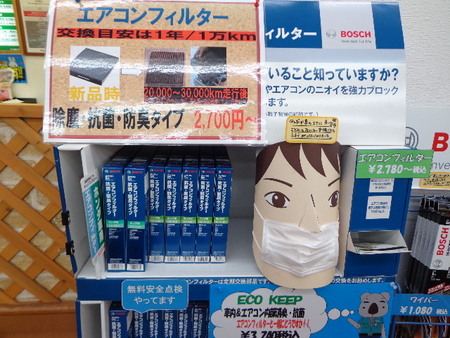 BOSCH エアコンフィルター ポスト ご存知ですか?エアコンフィルター。 エアコンフィルターとは空気の汚れをシャットアウトしてくれる優れものです。 花粉、ホコリ、粉じん、嫌~な臭いにお困りの方にオススメです。 ちなみに交換の目安は国産車で15,000kmで交換です。 無料点検も実施中なのでお気軽にお申しつけください! カテゴリ:商品情報 その他メンテナンス
