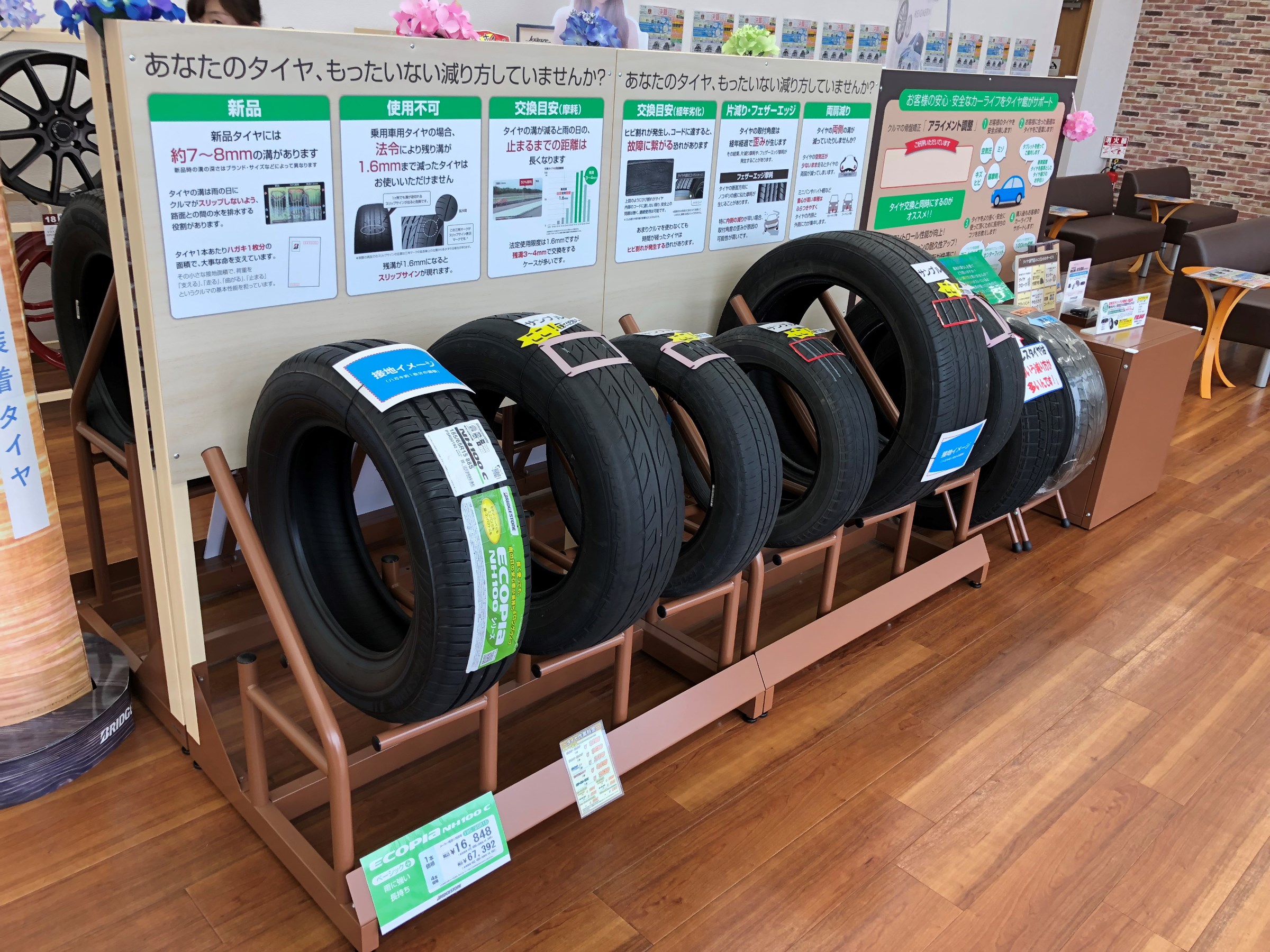 お客様に合ったタイヤ選びをさせてもう為に入り口に分りやすい