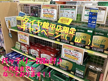 皆さんこんにちは。 ここ数日、暖かい日が続いていますね(*'▽') いきなり冷え込む日もございますので、体調にお気を付けください!! さて現在タイヤ館平店では、 『GSユアサ バッテリー交換応援キャンペーン』 を開催中です!!! 期間は、今月28日(土)までとなっております。 最近のバッテリー...