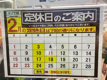 今年に入ってもう1ヶ月が経ちましたね。 最近寒い日が続いていますが雪は降らないですね。 当店としては雪が降ってくれるとありがたいのですが(^_^;) 今月の定休日はこちらになりますので宜しくお願い致します。