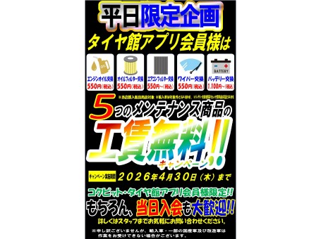 ☆☆平日・アプリ会員限定!メンテナンス工賃無料!