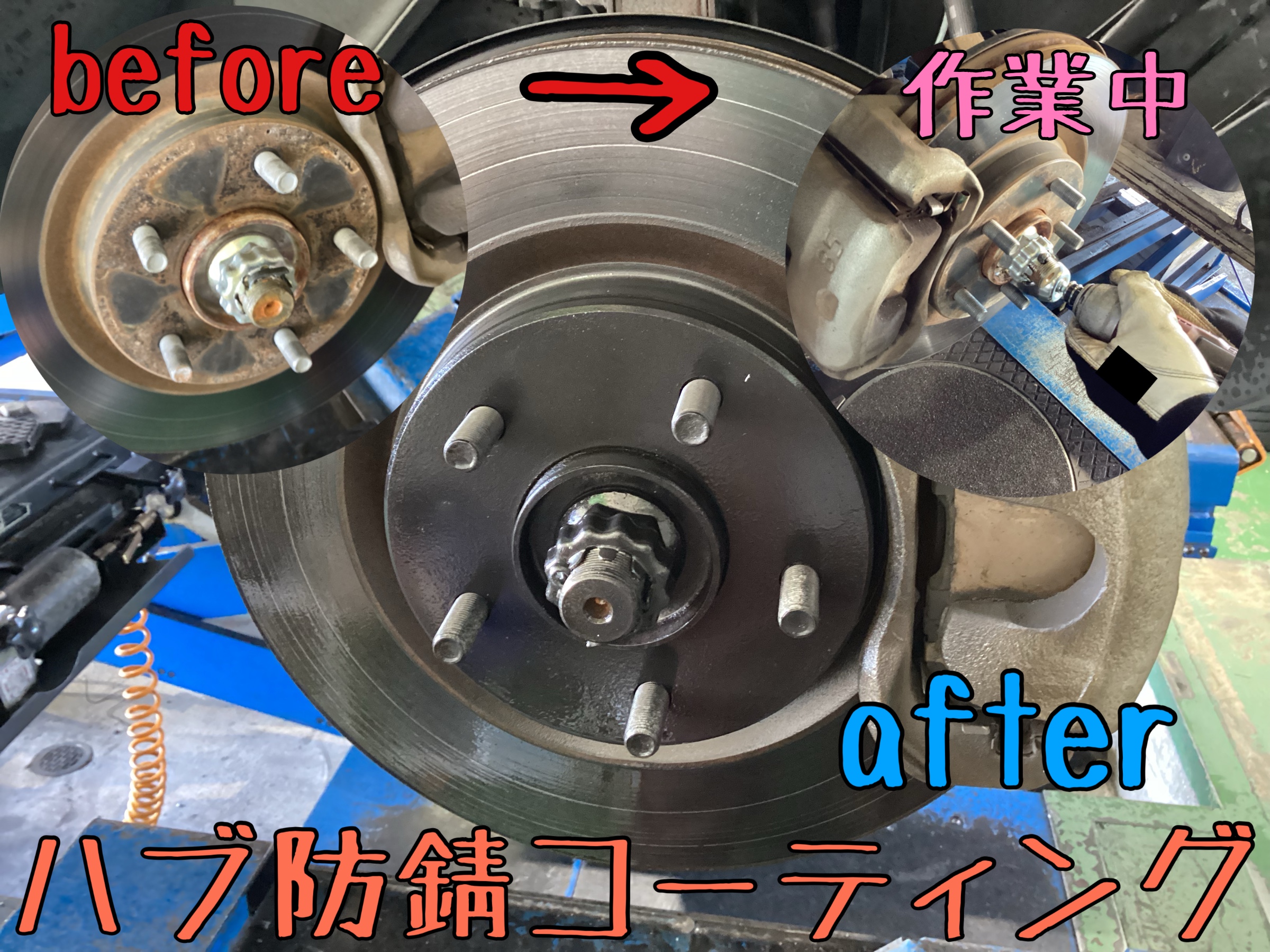 新しいタイヤを装着する前にハブの防錆コーティングをしていきます!