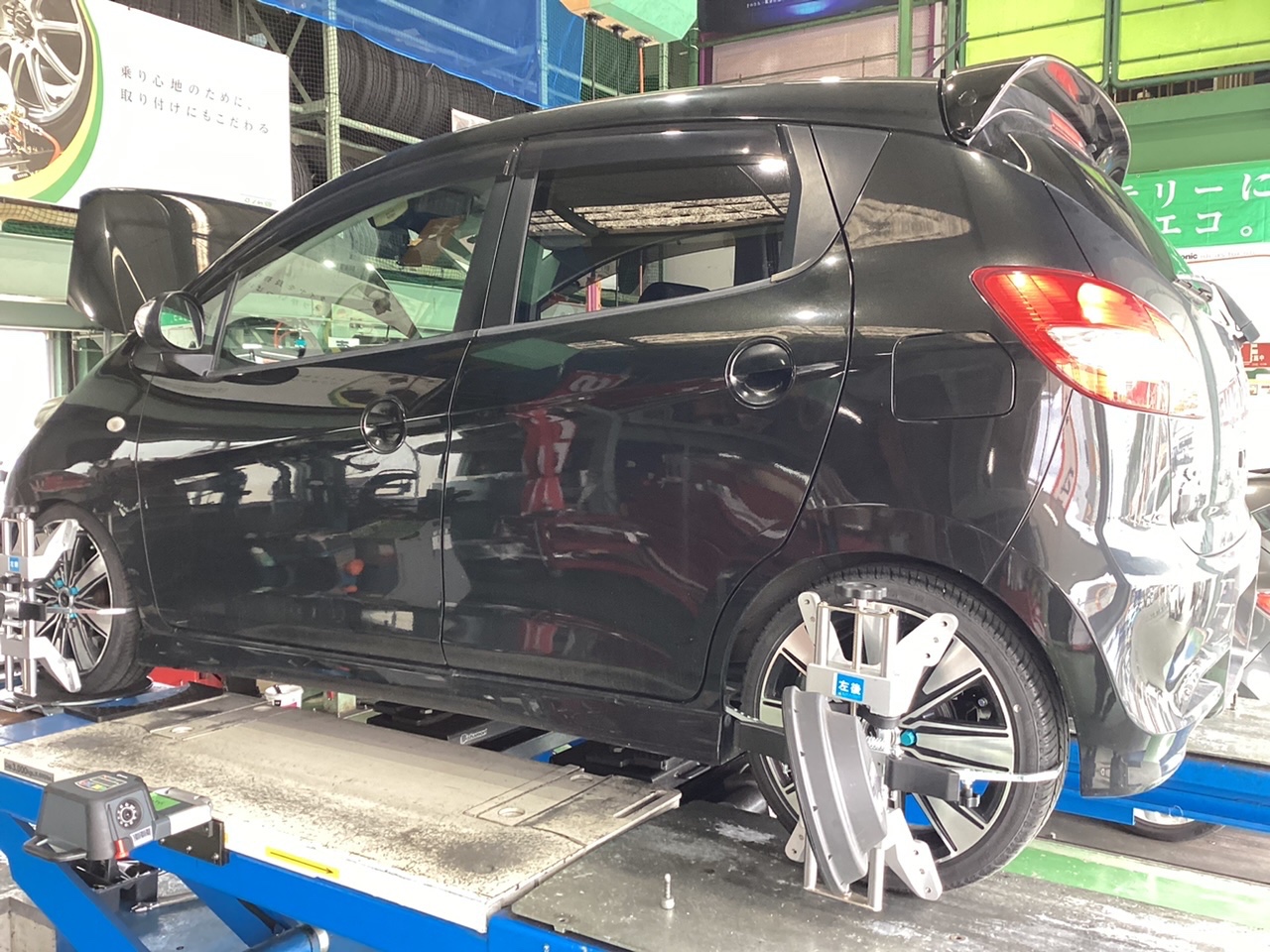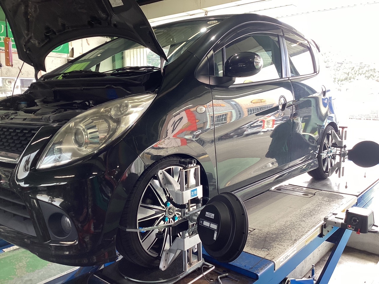 足回りを車高調に交換しましたスズキのセルボのアライメント調整を行いました。