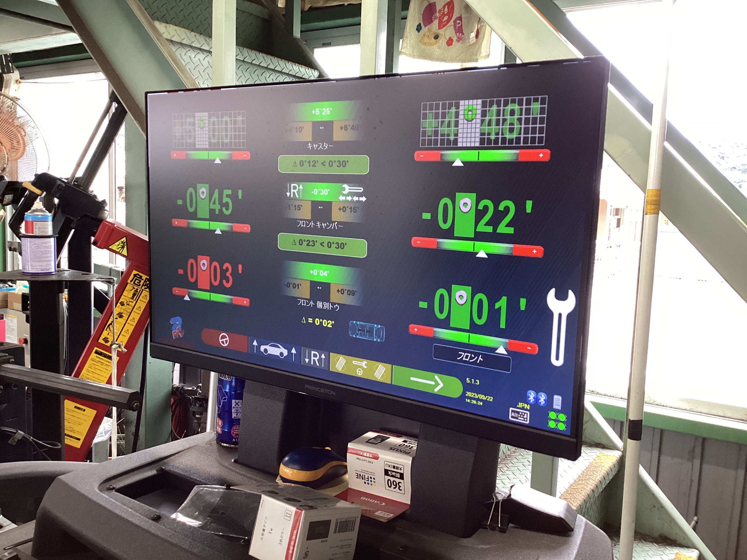 車両の基準値に合わせてタイヤを真っ直ぐの状態にします!