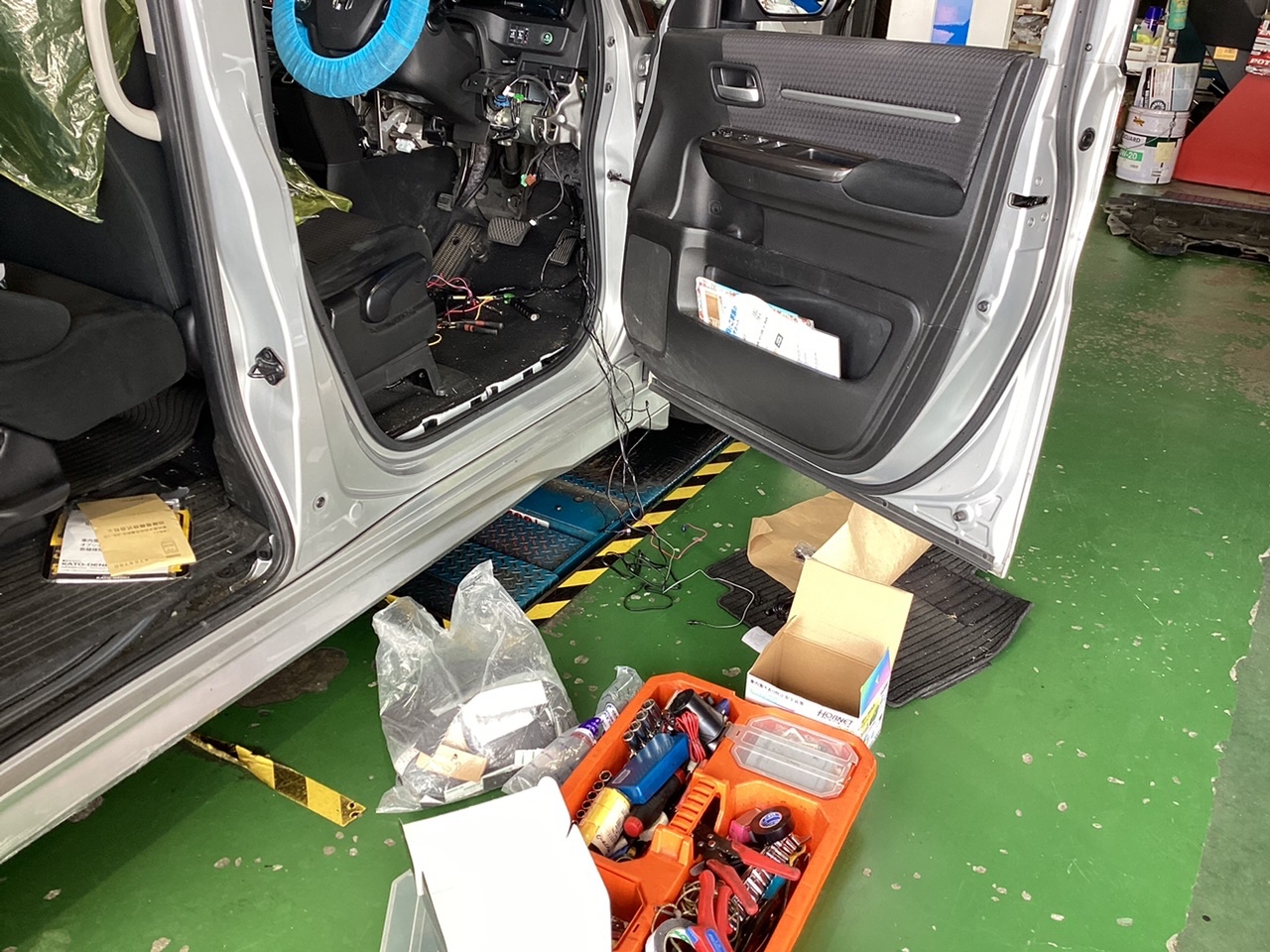 取り付けの作業途中の様子です。かなりの配線の数ですね。
