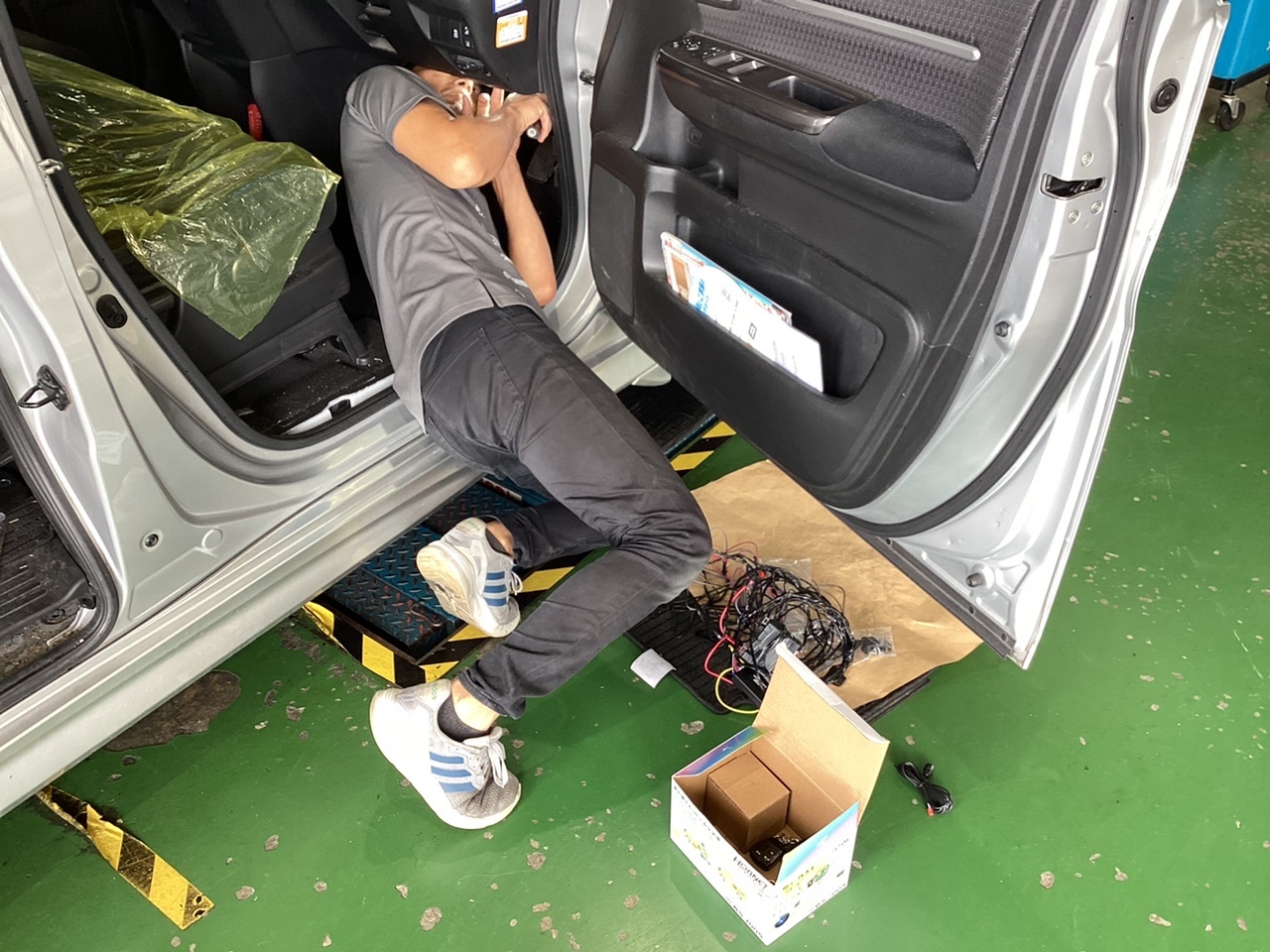 本日の作業は提携先からのご依頼で、送迎バスやお車の置き去りを防止する安全装置の取り付け作業です。