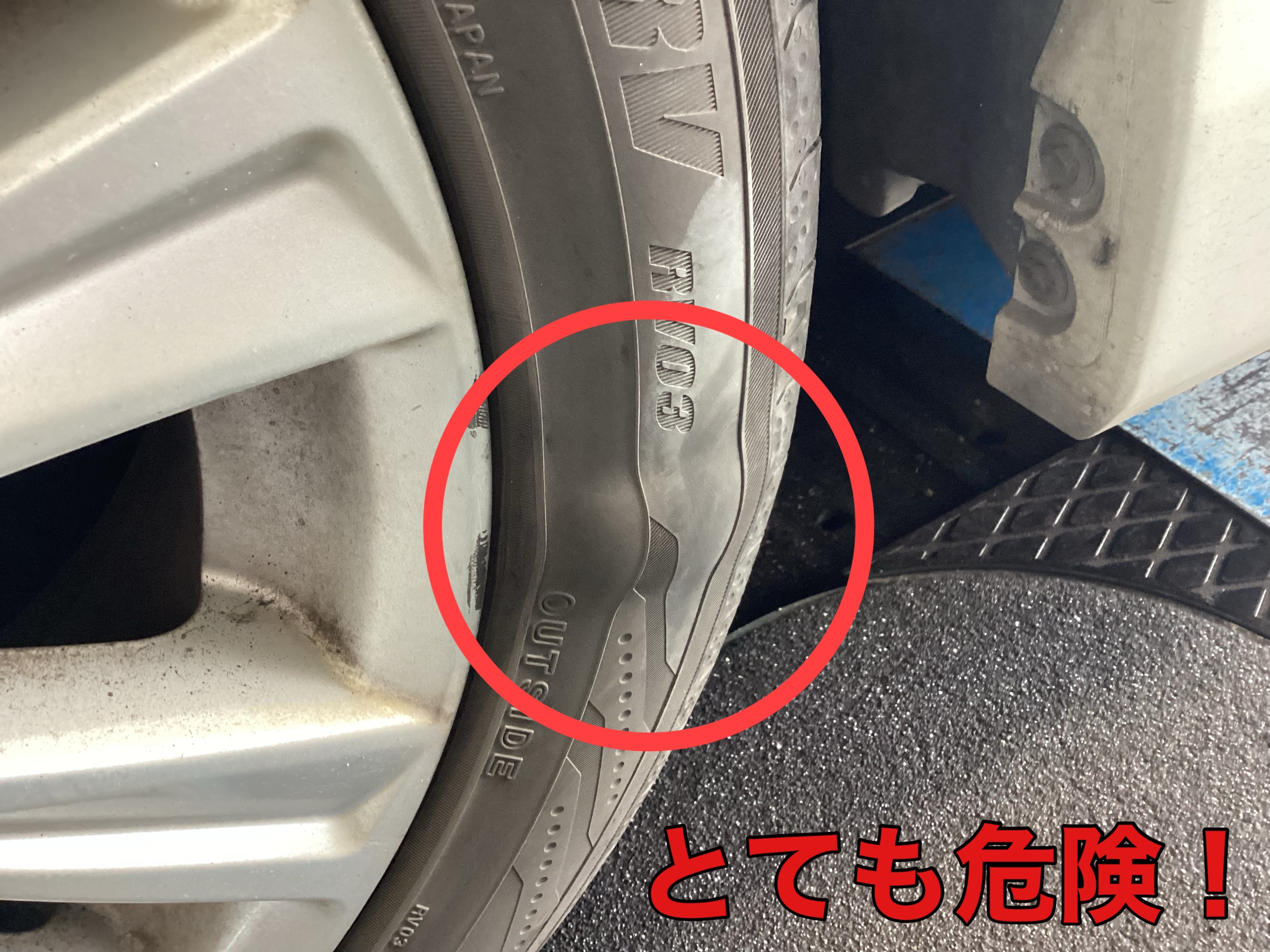 このような状態は大変危険で、最悪の場合タイヤがバーストする恐れもあります。