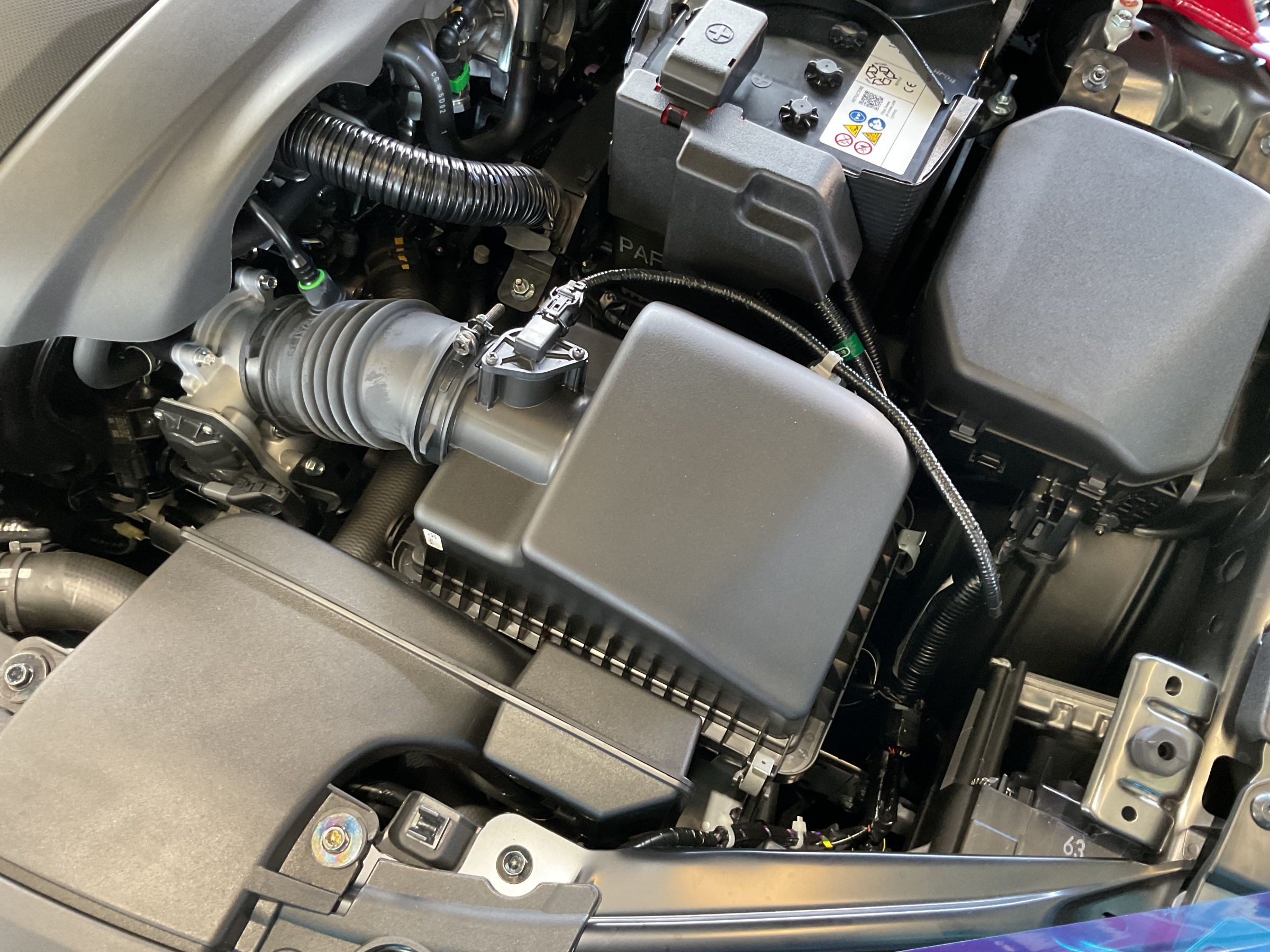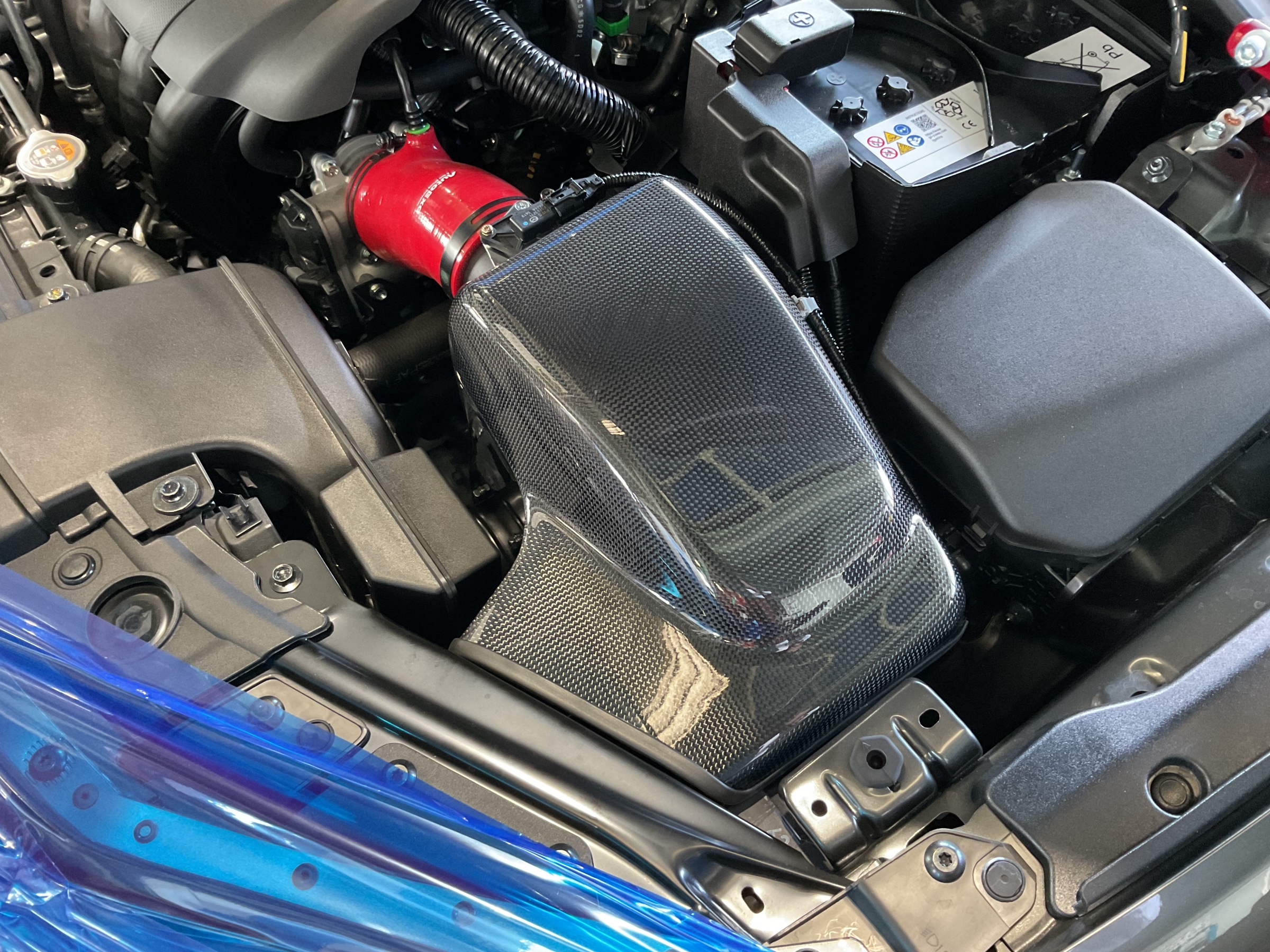 カーボン製インテークボックスの美しい質感がエンジンルームに華を添えます。