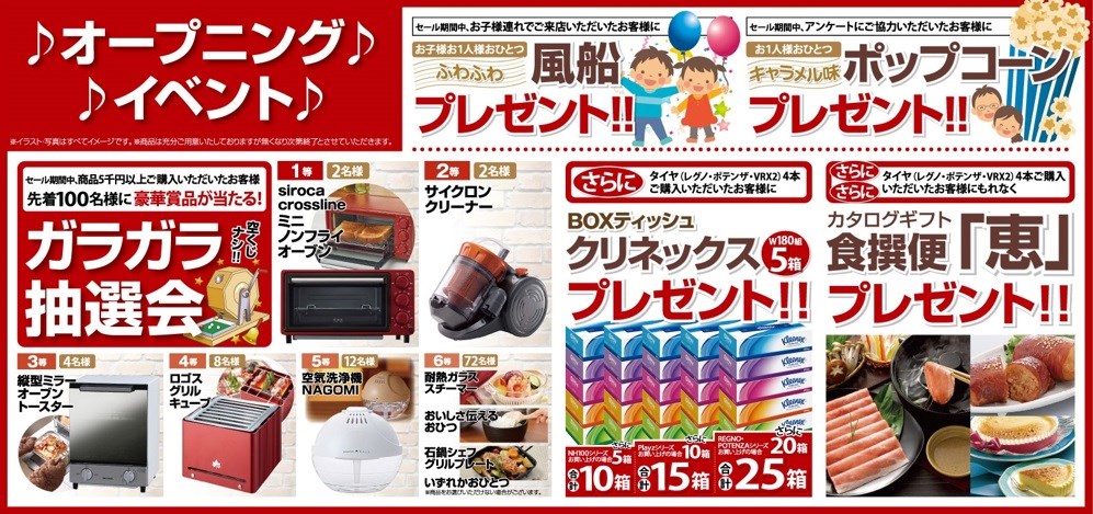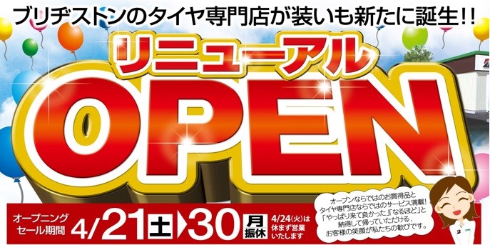 リニューアルオープンのお知らせ ポスト 2018年4月16日 こんにちは、 タイヤ館太子の店長 山本です。 只今 タイヤ館太子店は、装いも新たに生まれ変わるために 店舗の改装工事を行っております。 16日~20日の金曜日までは臨時休業となりご迷惑をお掛け致し 申し訳ありません。 リニューアルオープンは 4月21日(土) 朝10:00~です! リニューアルオープンを記念いたしましてご購入プレゼントや 素敵なイベントをご用意しております。 皆様のご来店スタッフ一同心よりお待ち致しております! 今しばらくお待ちくださいませ・・。 カテゴリ:お知らせ