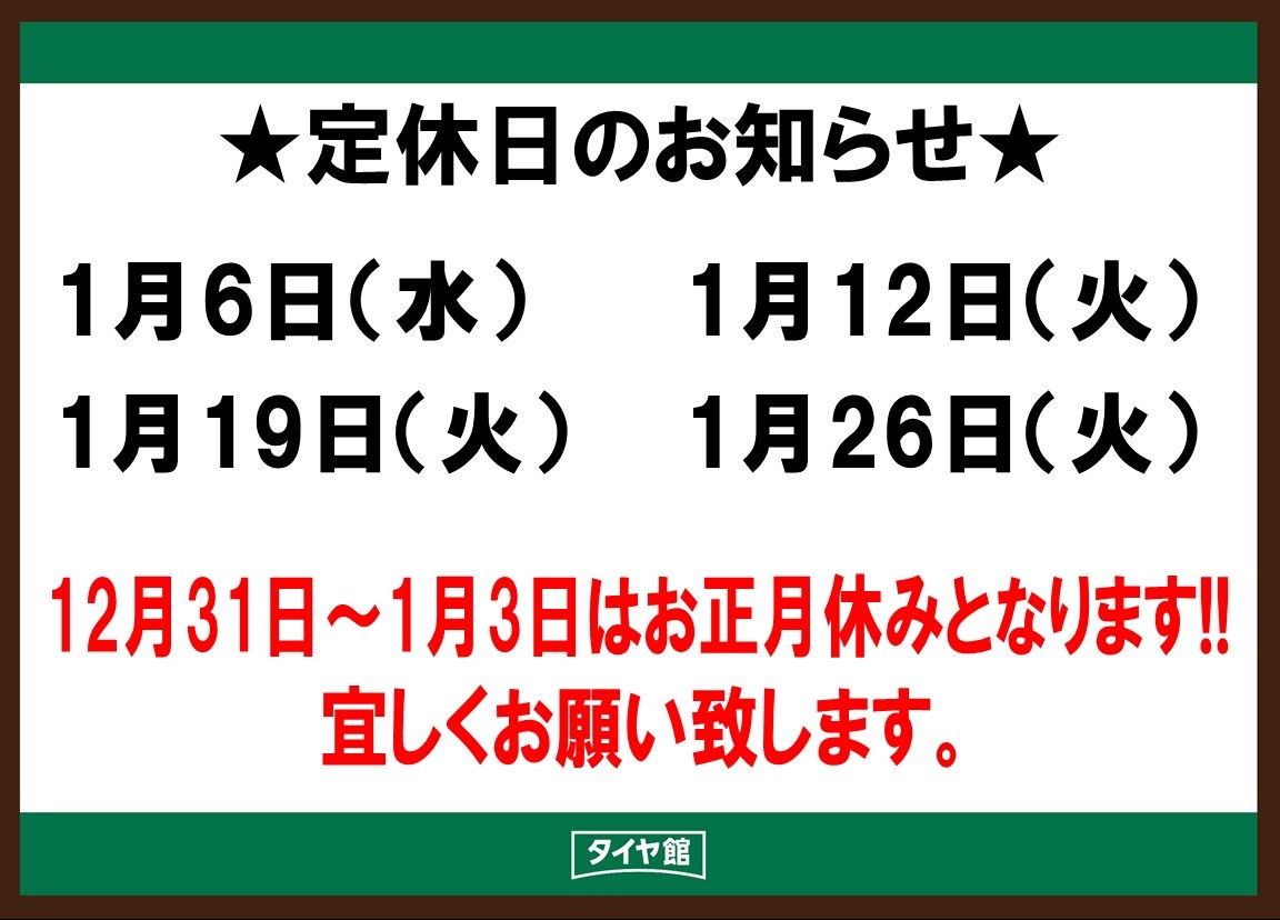 ☆1月の定休日のお知らせ☆