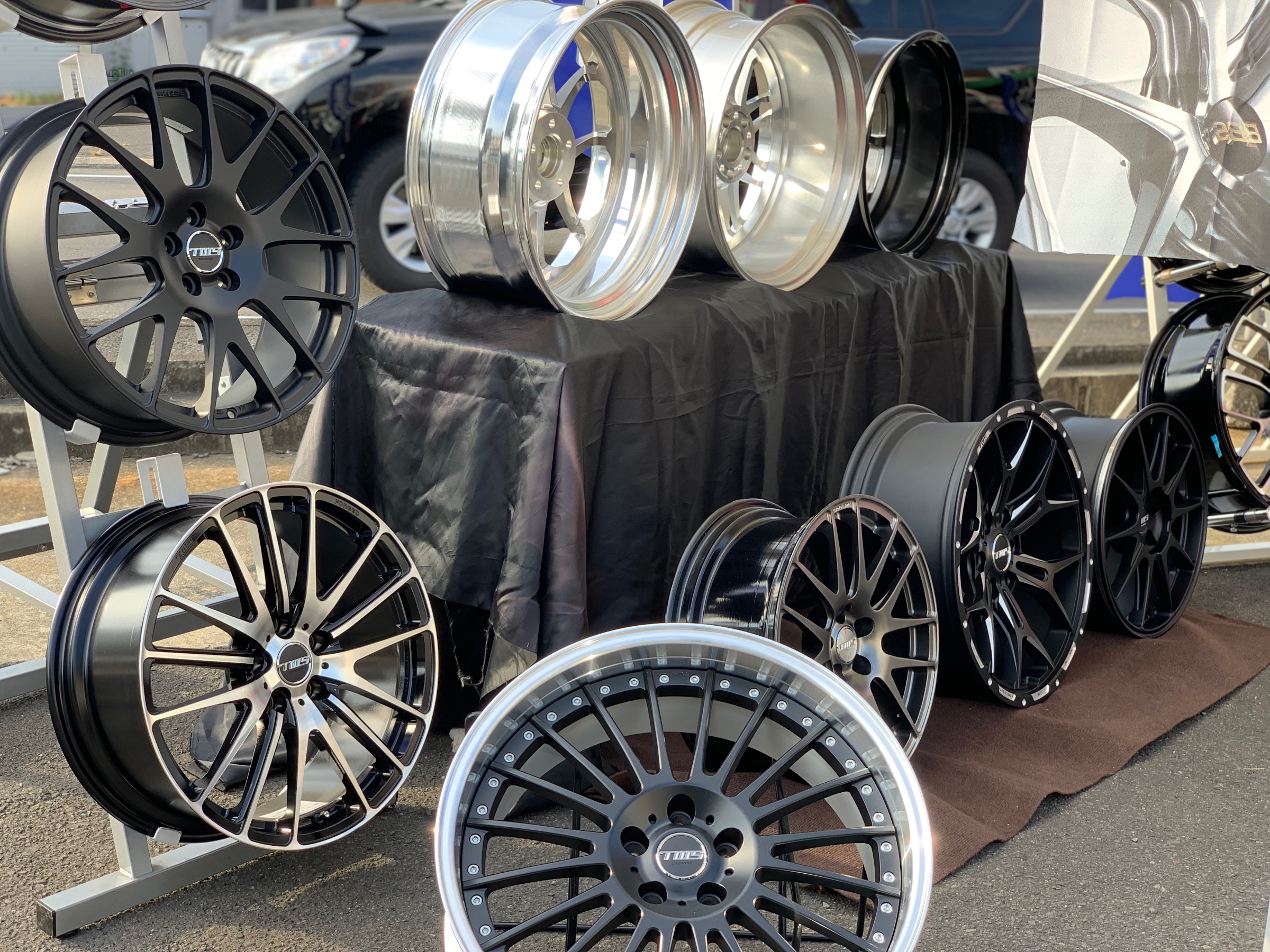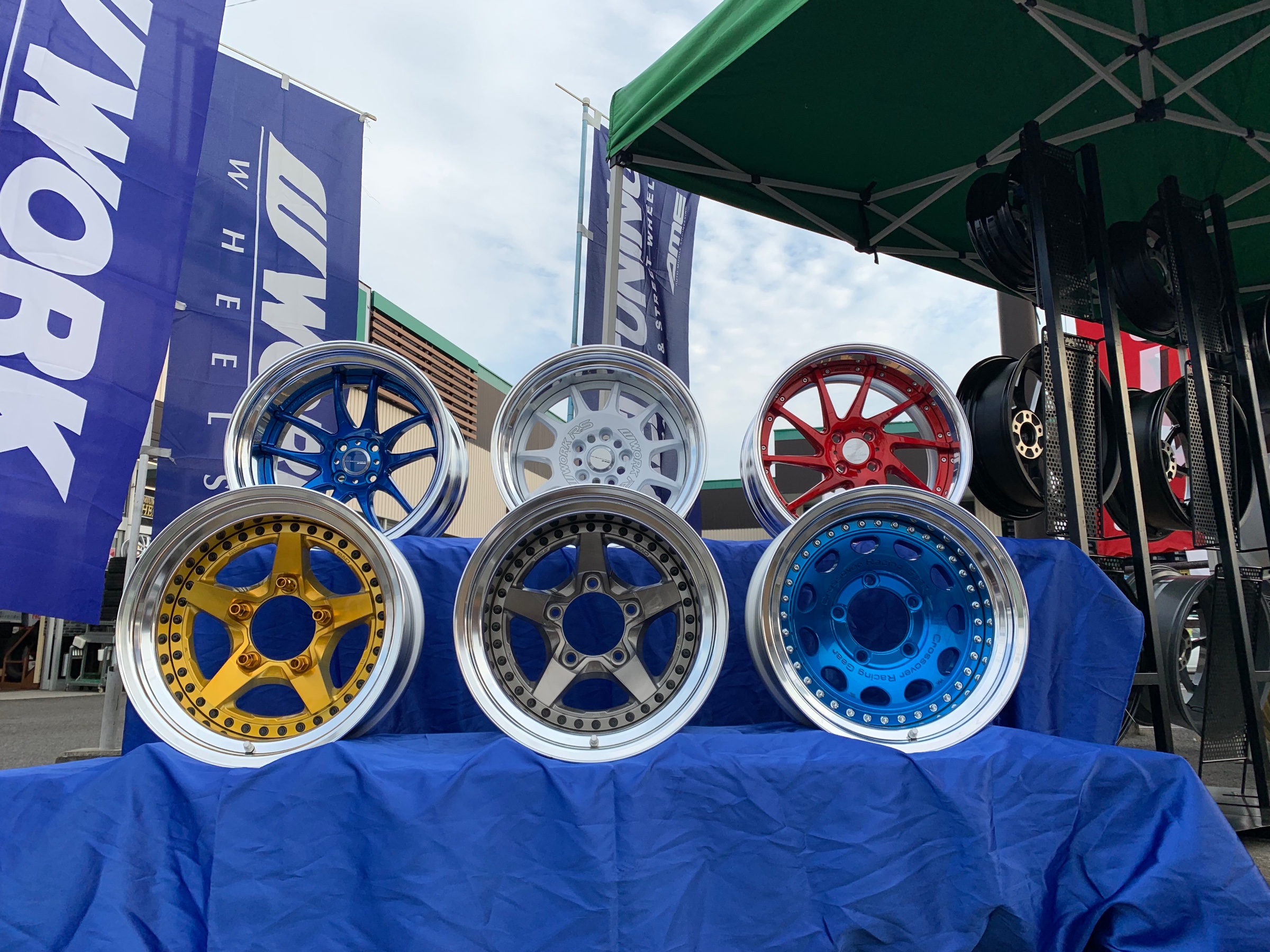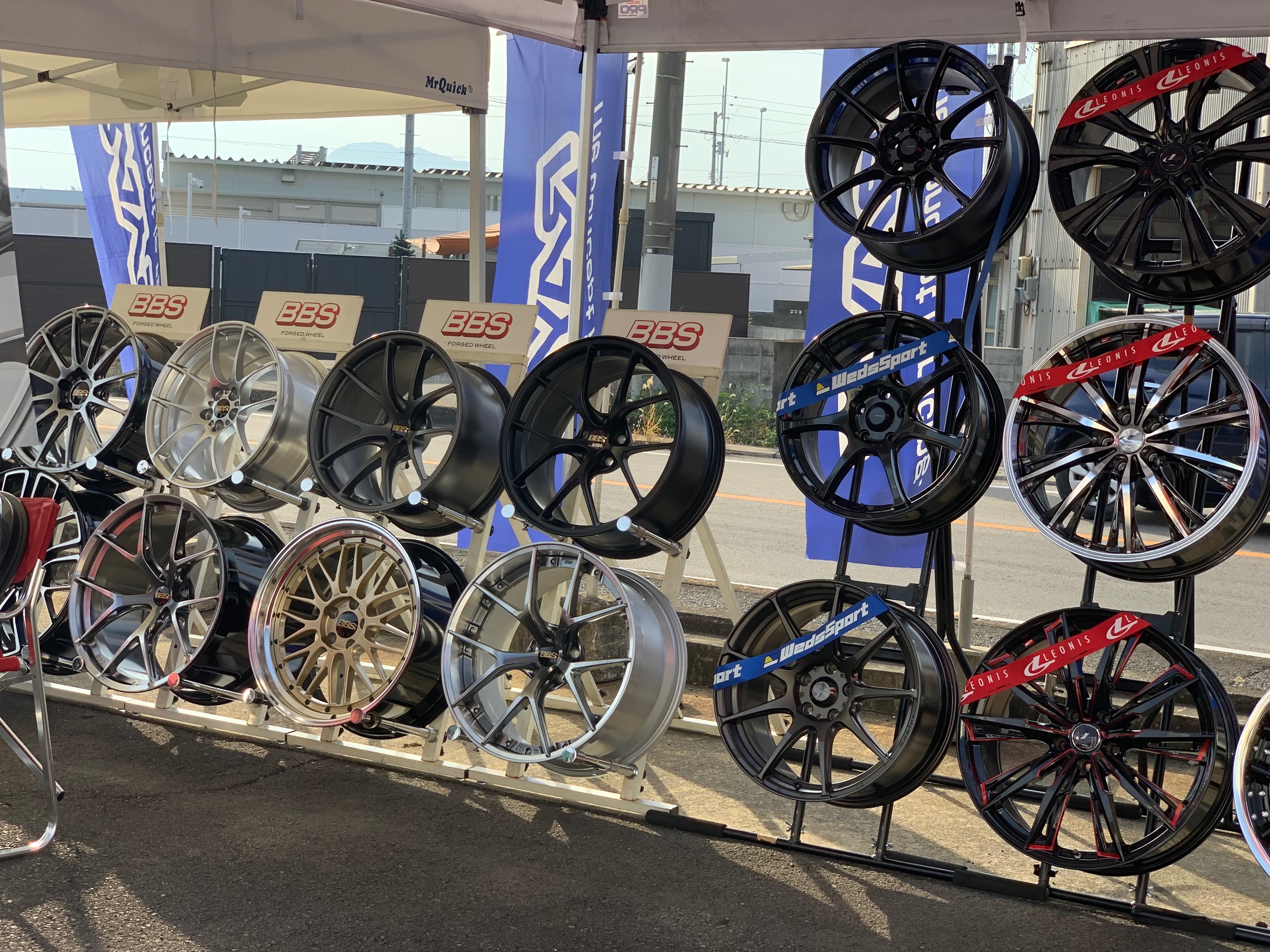 タイヤ館高松店でいろいろなメーカーのホイールを展示する特別な期間