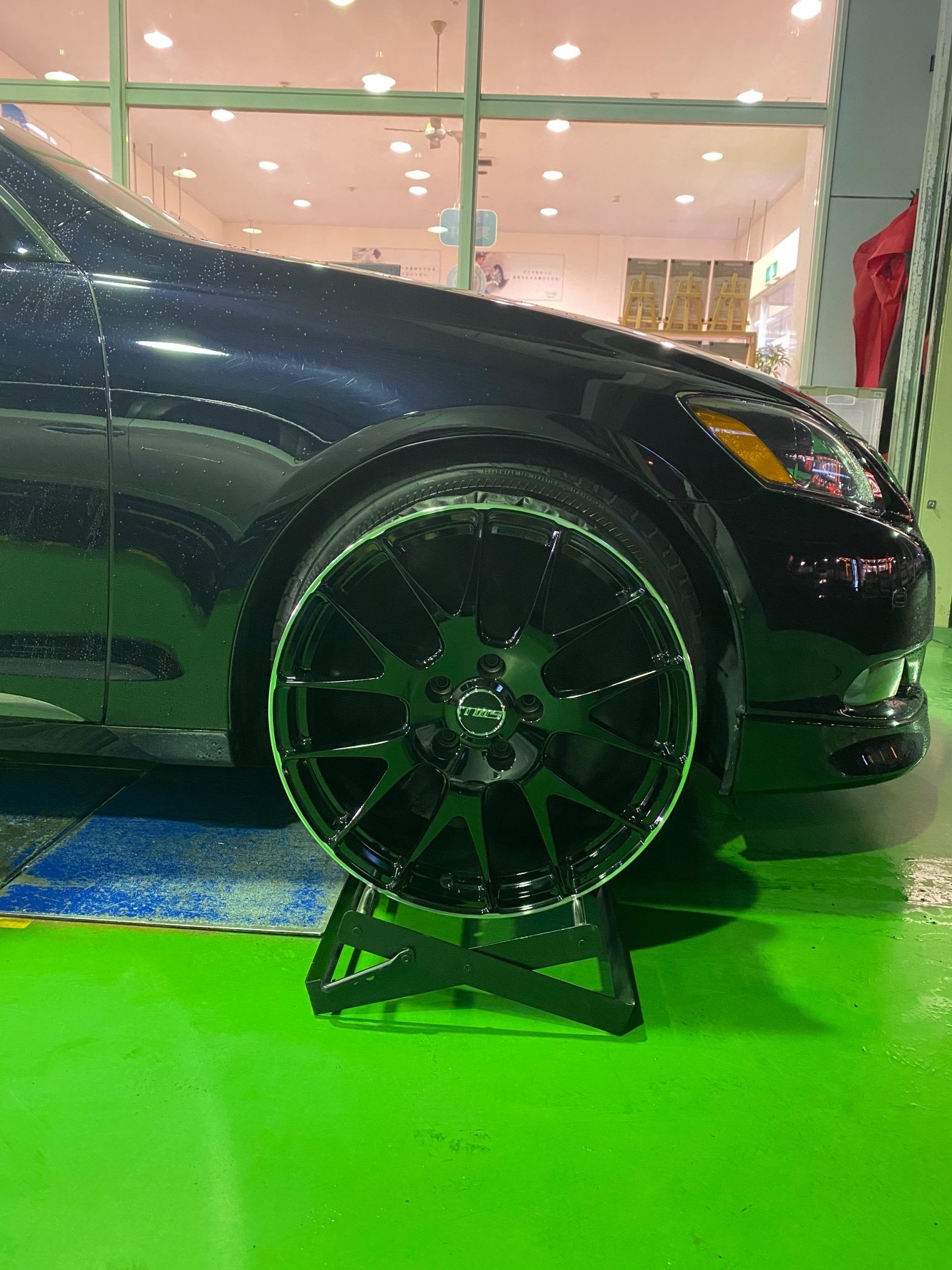 タイヤ館高松店でいろいろなメーカーのホイールを展示する特別な期間