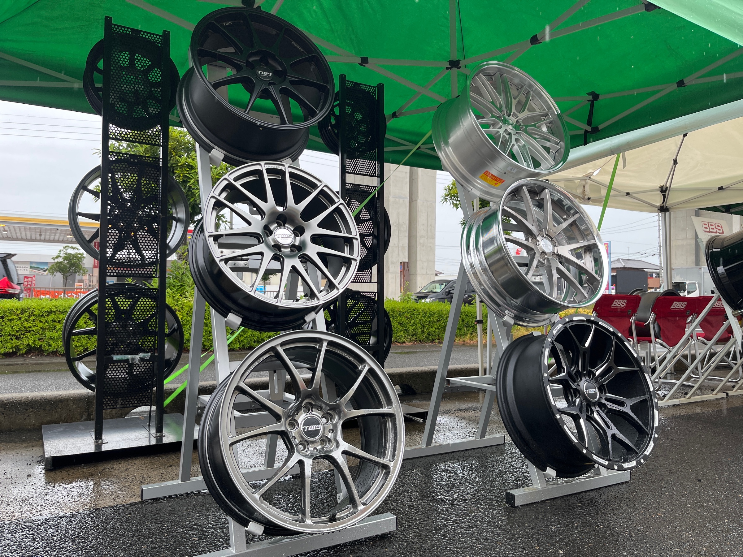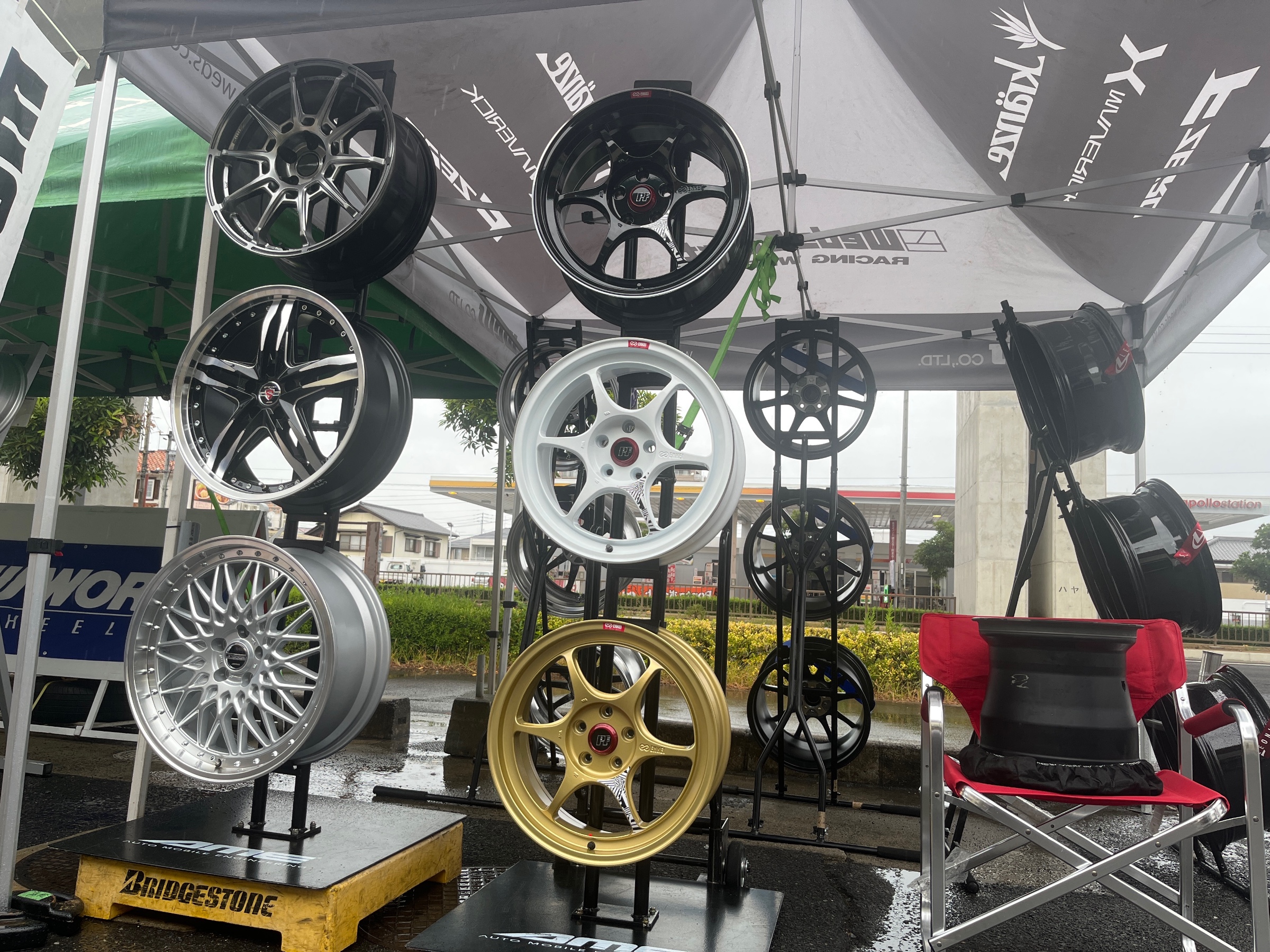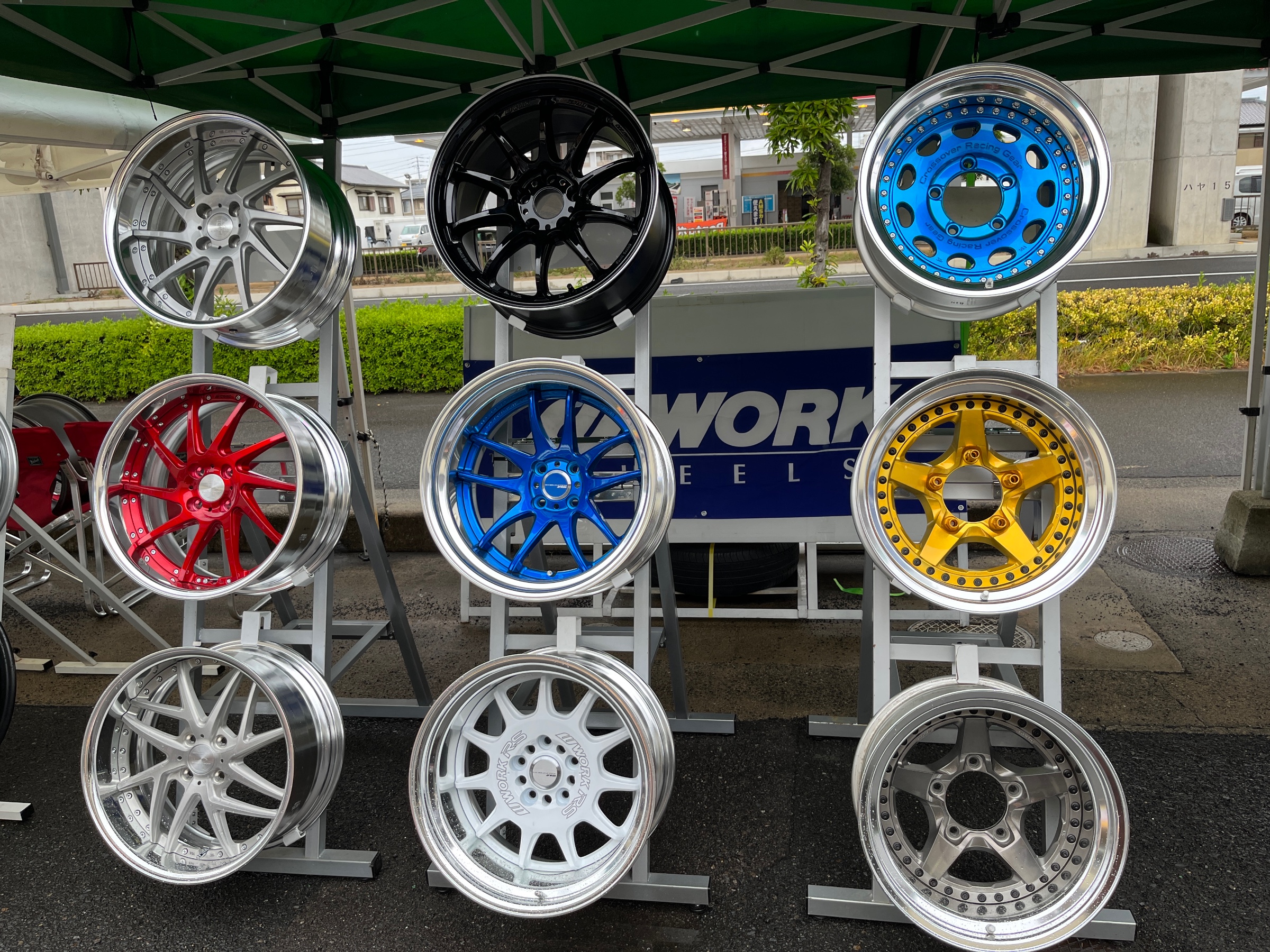 タイヤ館高松店でいろいろなメーカーのホイールを展示する特別な期間