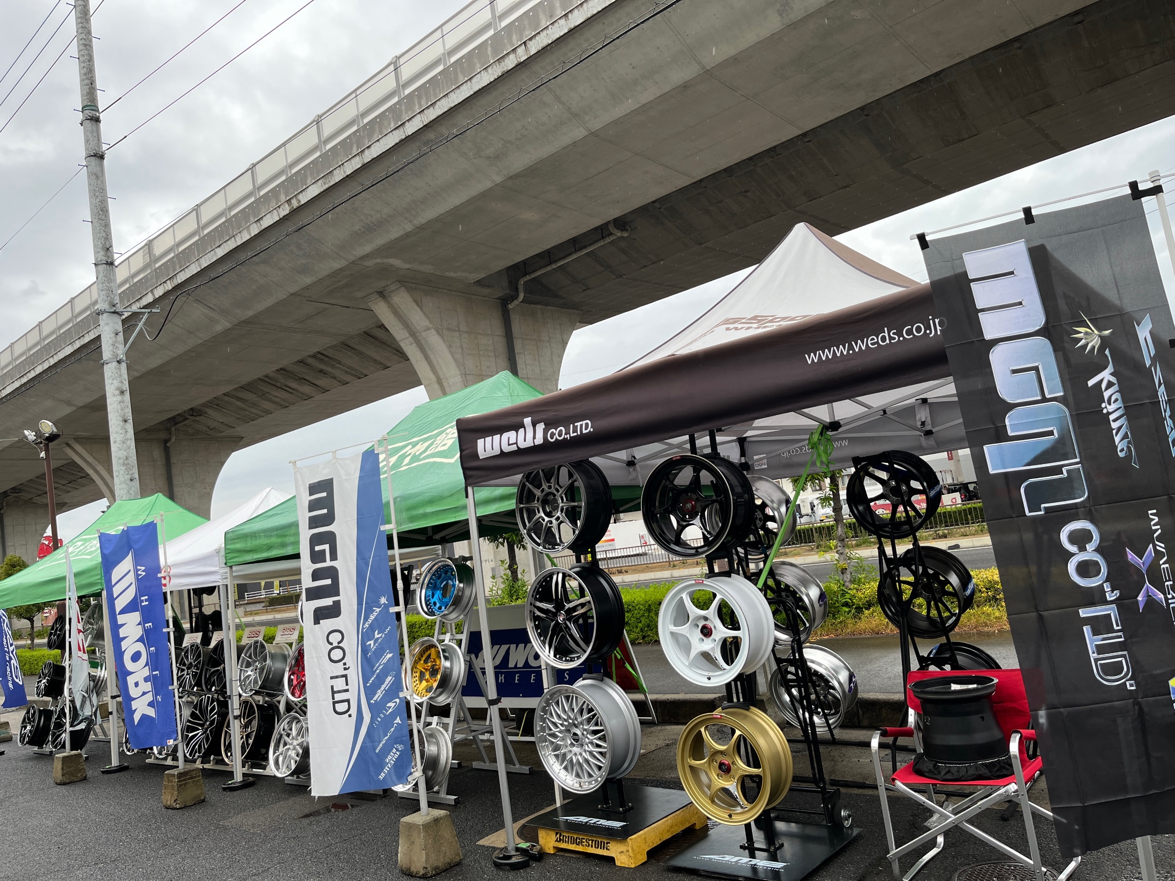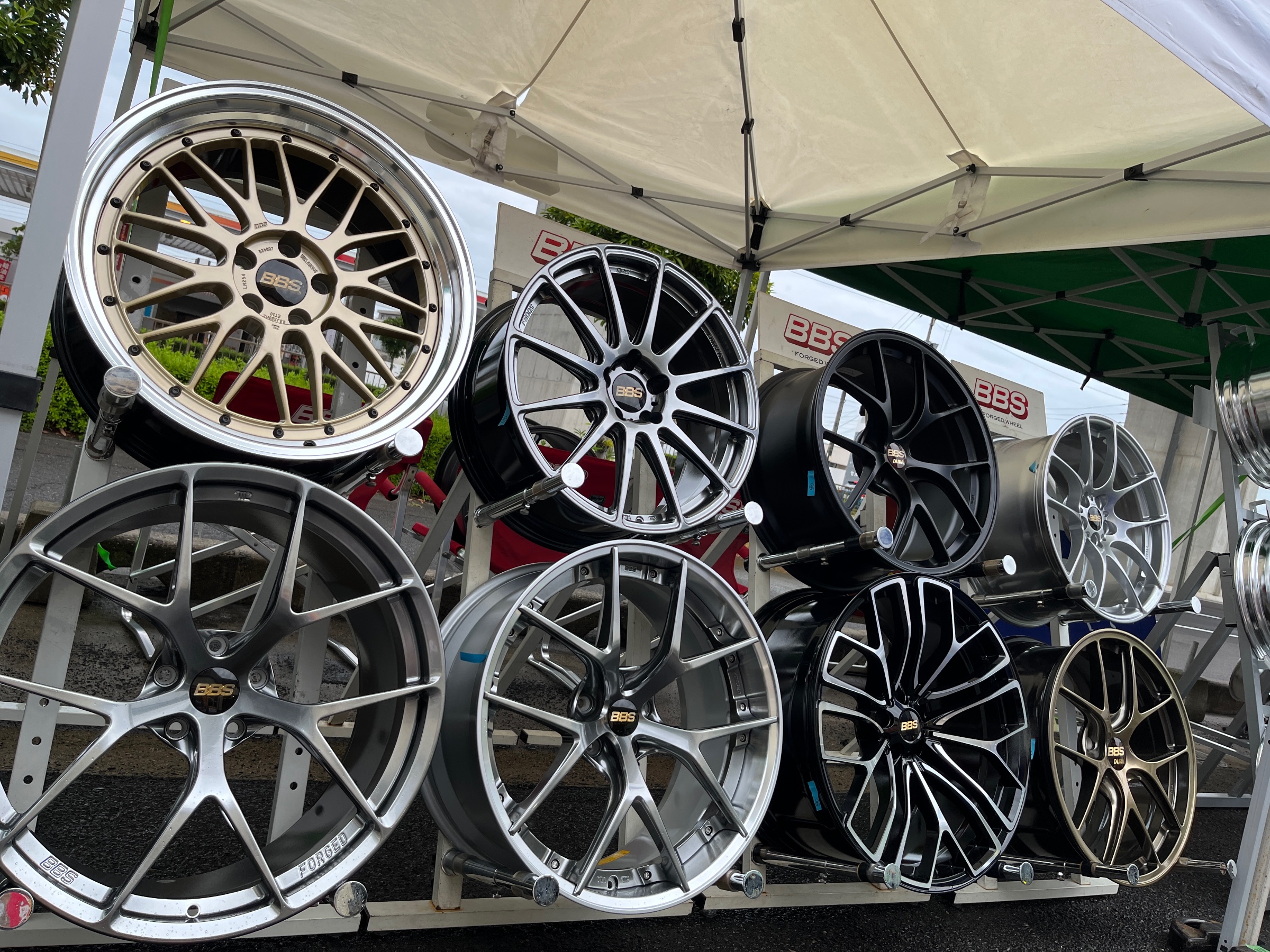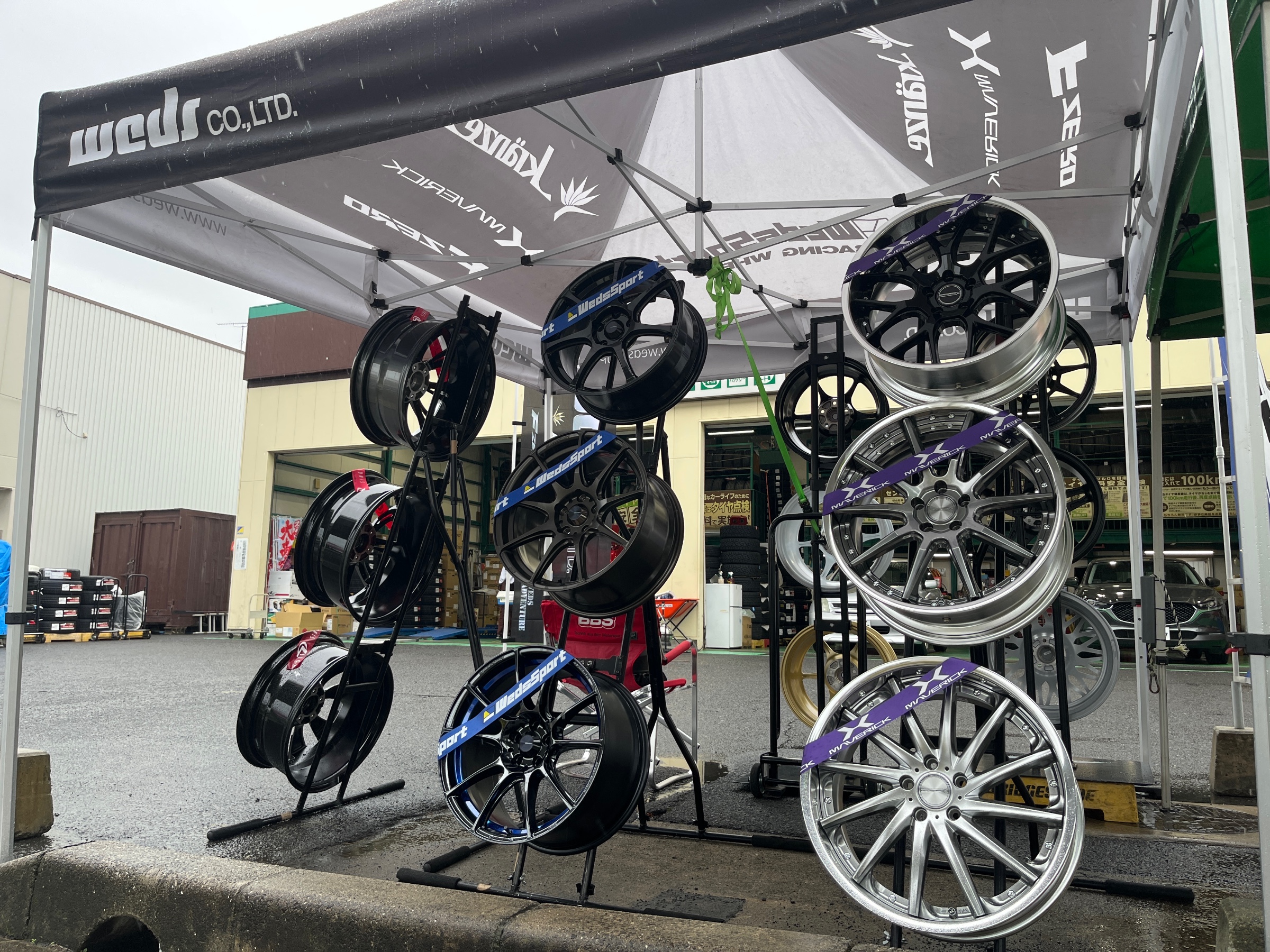 タイヤ館高松店でいろいろなメーカーのホイールを展示する特別な期間