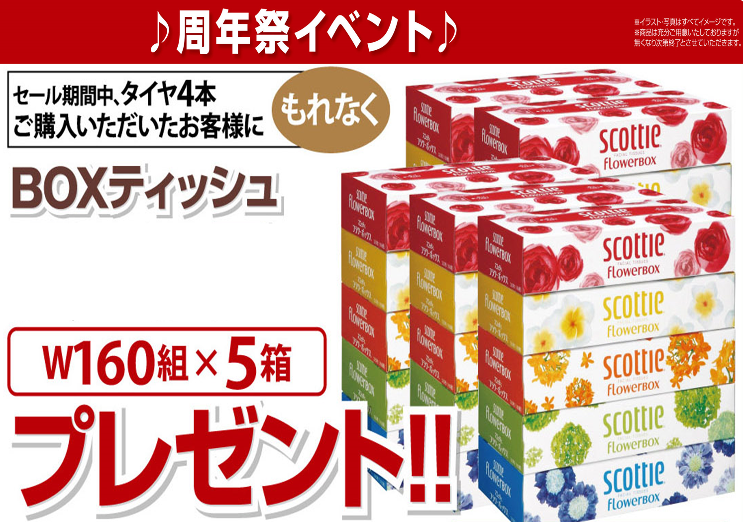 タイヤ4本ご購入でBOXティッシュ5箱プレゼント(^^)/