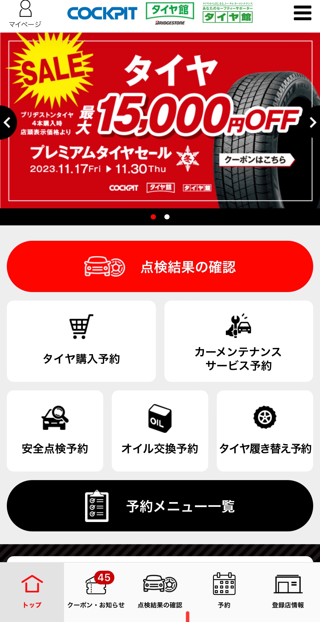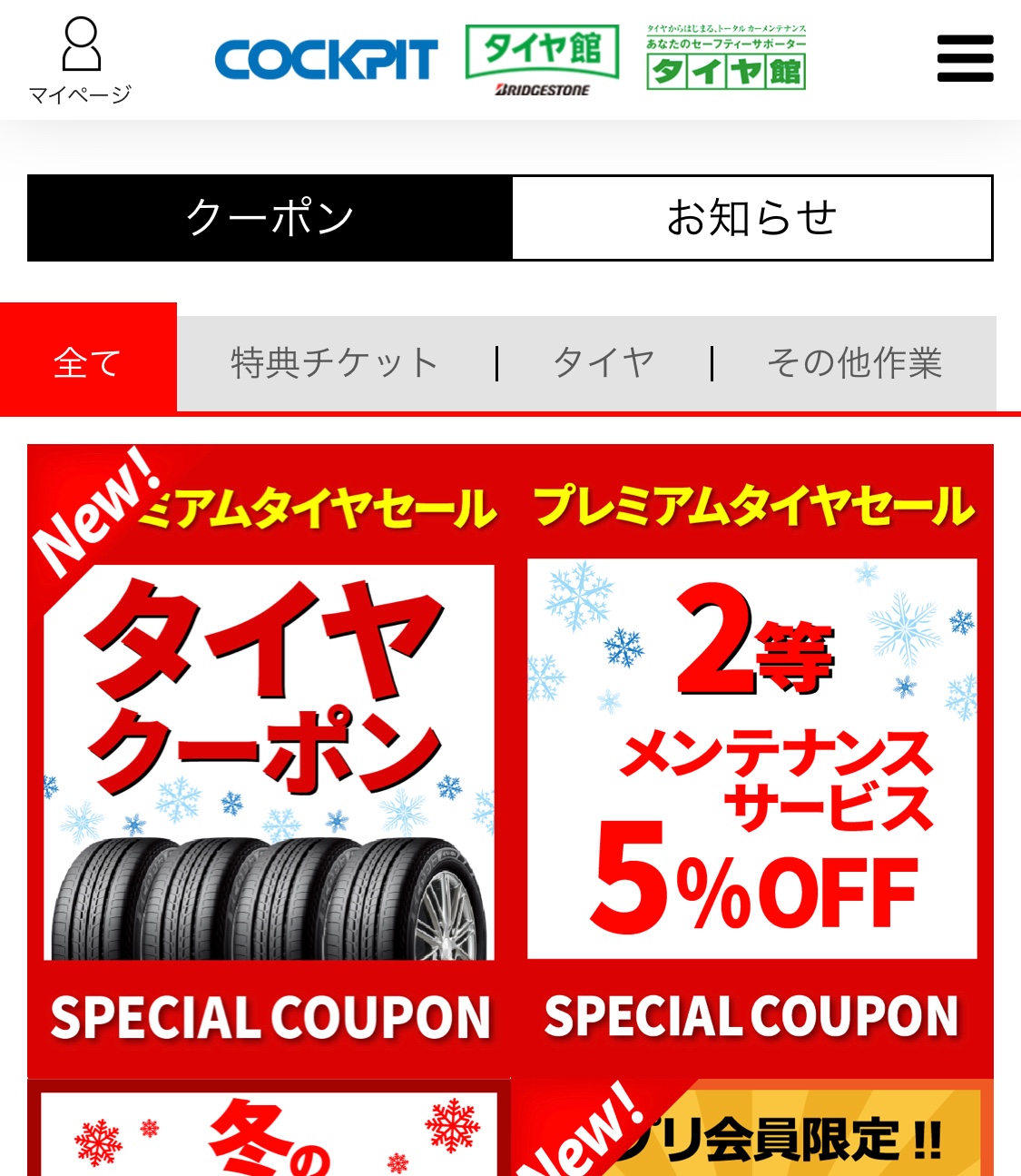 タイヤクーポンをタップ!!