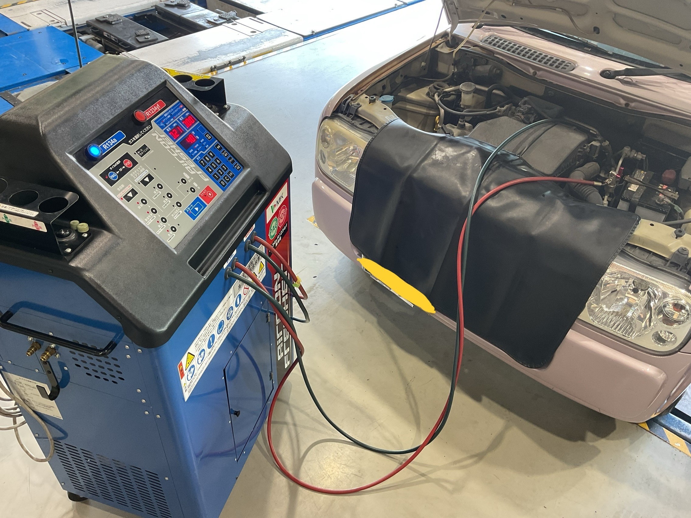 ガスクリーニングを施工し、不純物・水分を取り除き、一度ガスを抜き取り、お車に合わせた