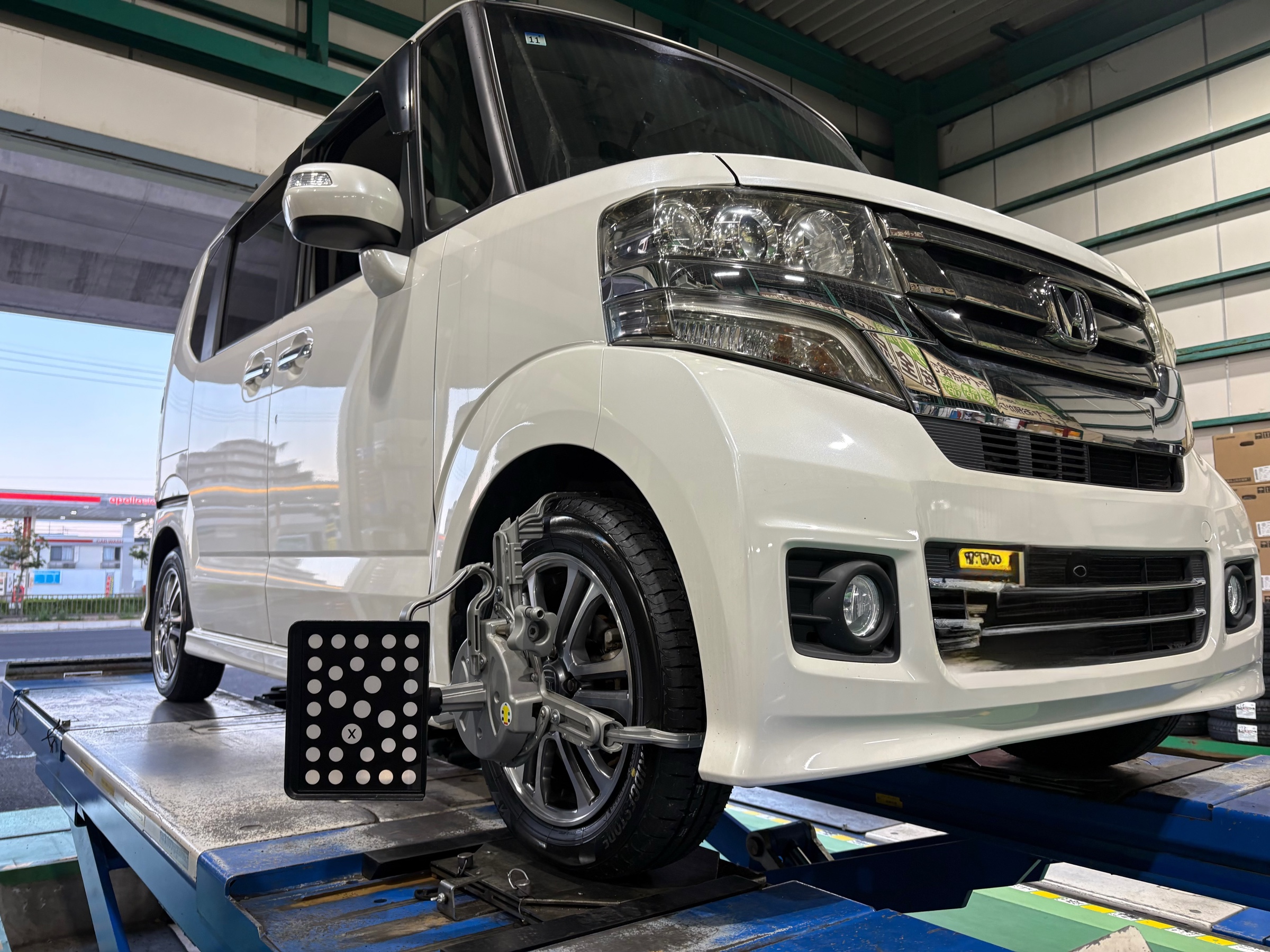 N-BOX 155/65R14ニューノ装着‼‼ 片べりしていたのでしっかりアライメント調整までさせていただきました★