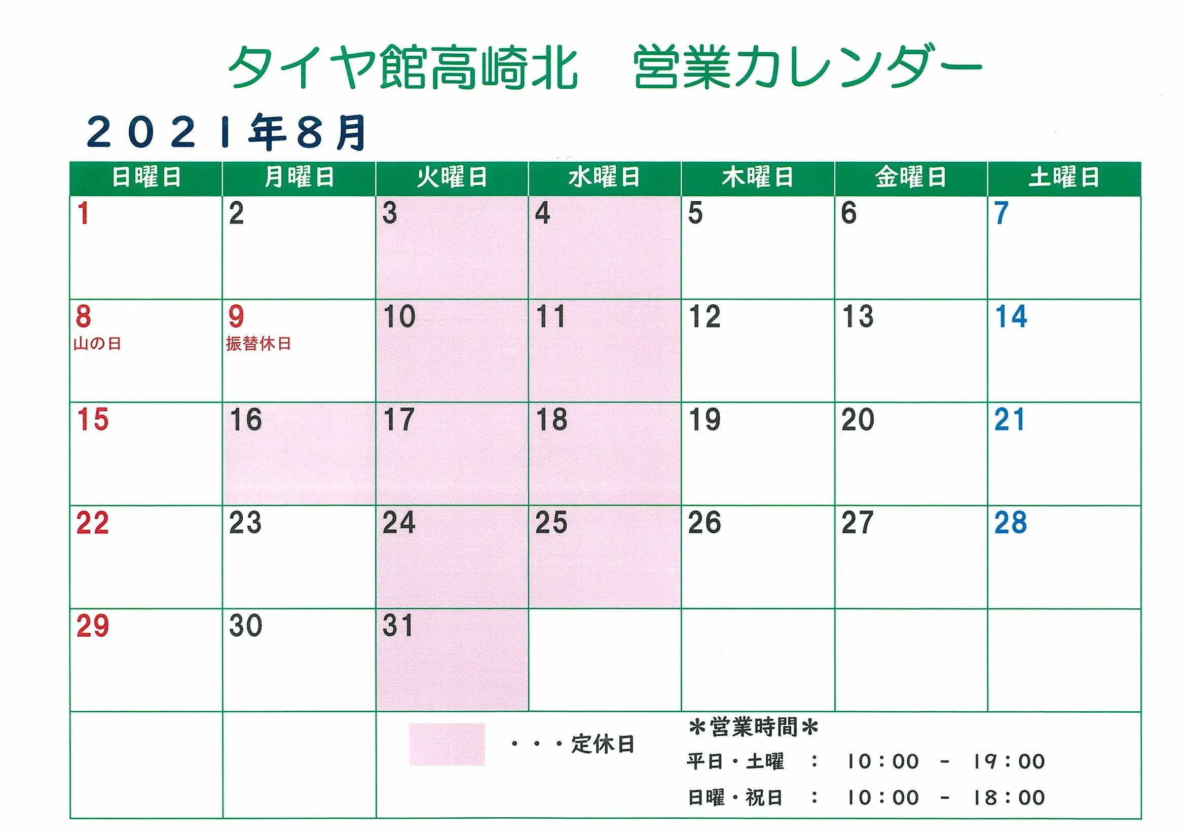 また、8/16がお休みとなっております。