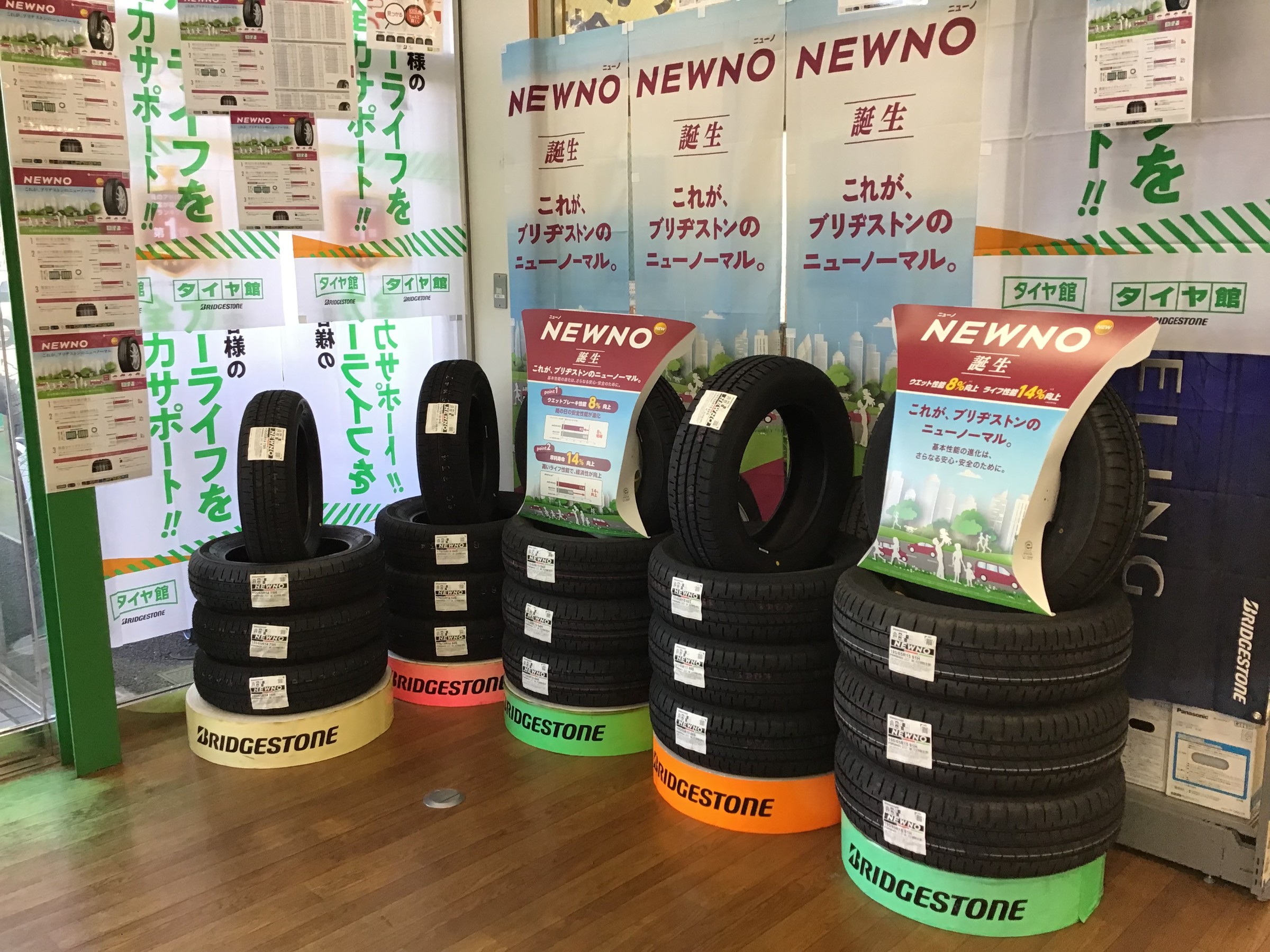 新商品! ポスト 2023年2月5日 皆様こんにちは! まだまだ冷え込む季節ですね・・・ 寒い時期はバッテリーが弱りやすくなります。当店では無料でバッテリー点検を行っておりますので、お気軽にご来店ください! さて、ブリヂストンから新しい夏タイヤ「NEWNO」が誕生しました! 新商品「NEWNO」のブースを作りましたので、ご来店の際にぜひご覧ください! 担当:松岡