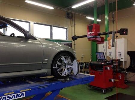 アライメント作業 ポスト 2016年6月24日 昨日はステージアのお客様のアライメント作業がありました。写真は数値を測定している時のものです。アライメントは車の骨盤矯正と言われています。タイヤの取り付け部分に歪みがあると、タイヤが偏って減ったり、燃費が悪くなってしまいます。ハンドルをまっすぐにしていても曲がっていってしまうなど、不安な方は測定のみも行っております!お気軽にご相談ください! 担当:宮澤