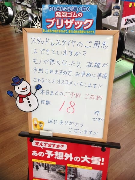 当店ではすでに20件近くスタッドレスタイヤのご予約・ご成約を頂いております。